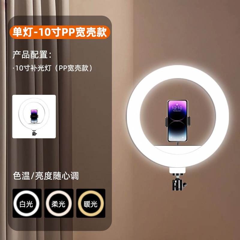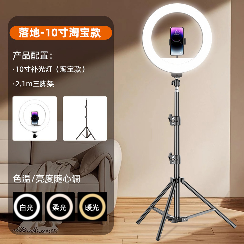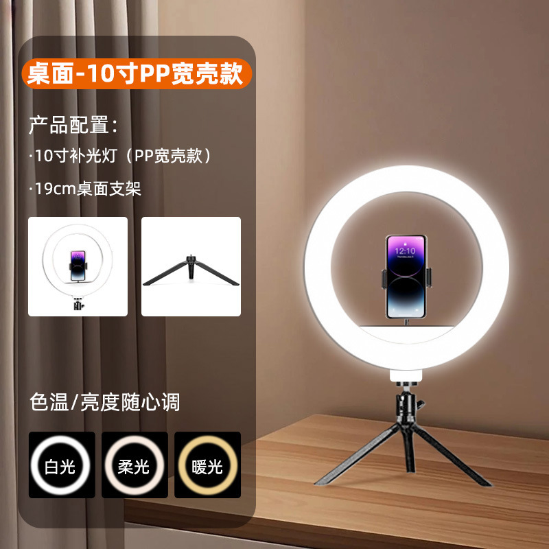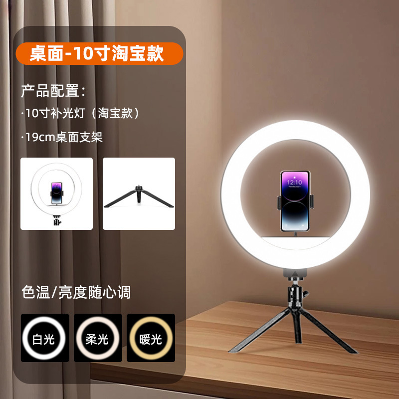 手机补光灯十寸桌面美颜直播灯落地拍摄USB便捷环形网红直播支架
