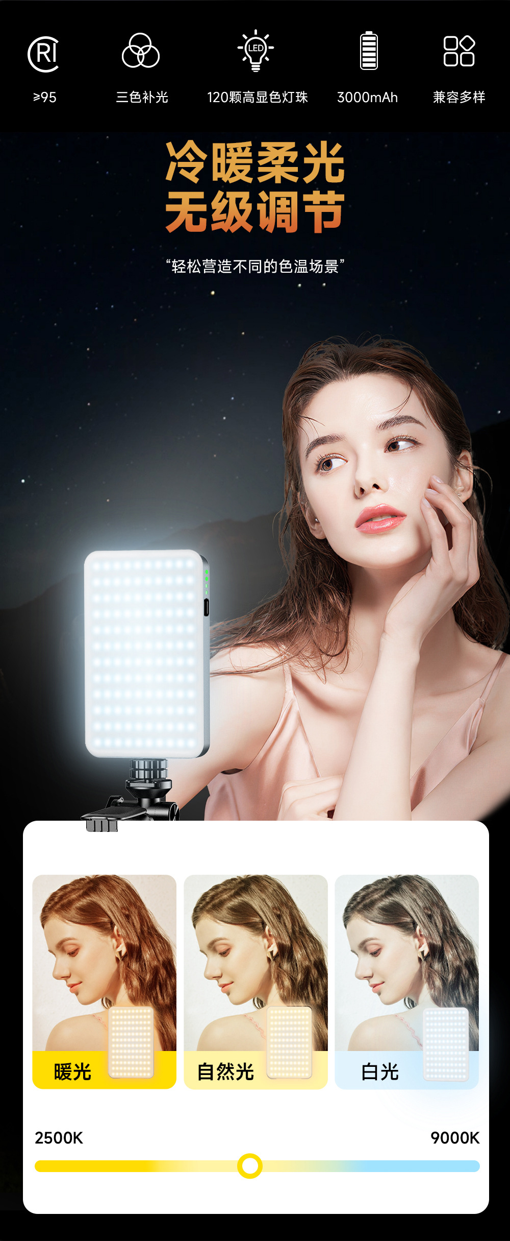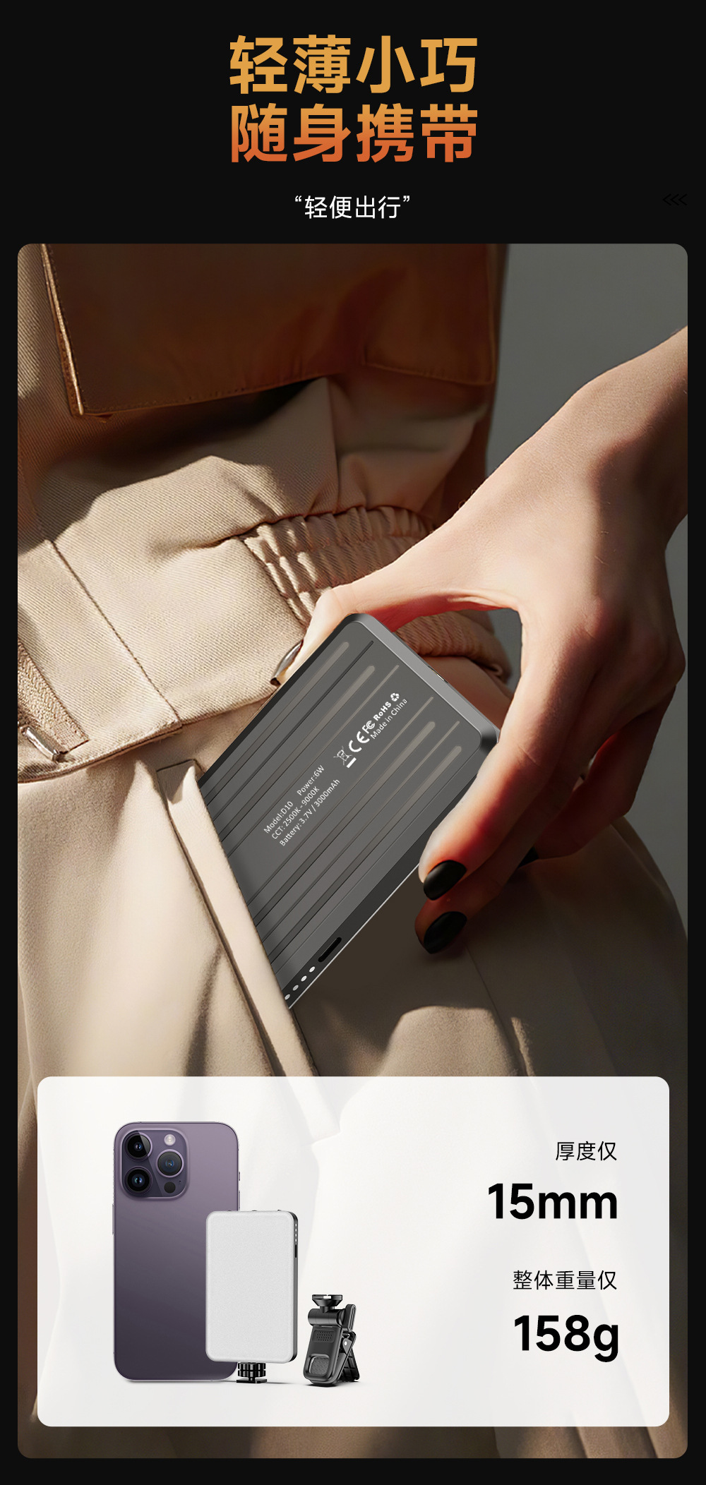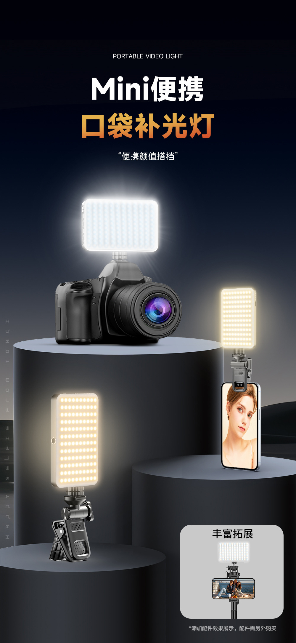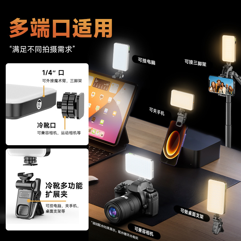 手机补光灯D10迷你便携口袋灯直播美颜灯拍照神器led补光灯三色温