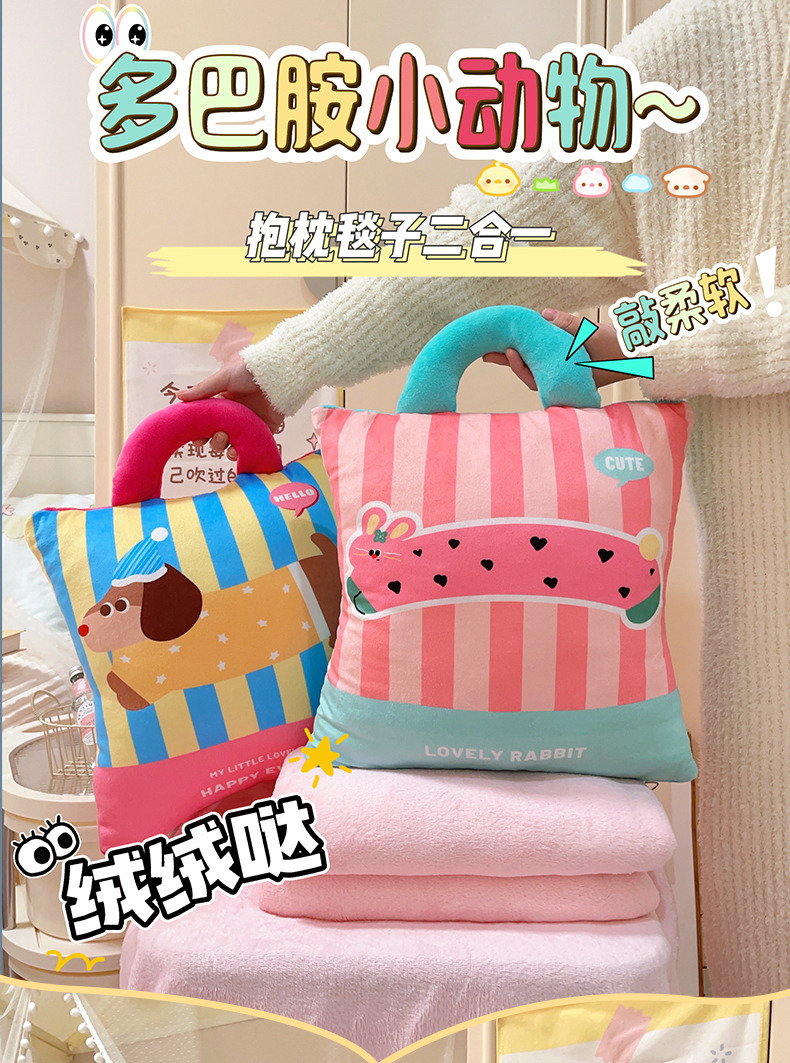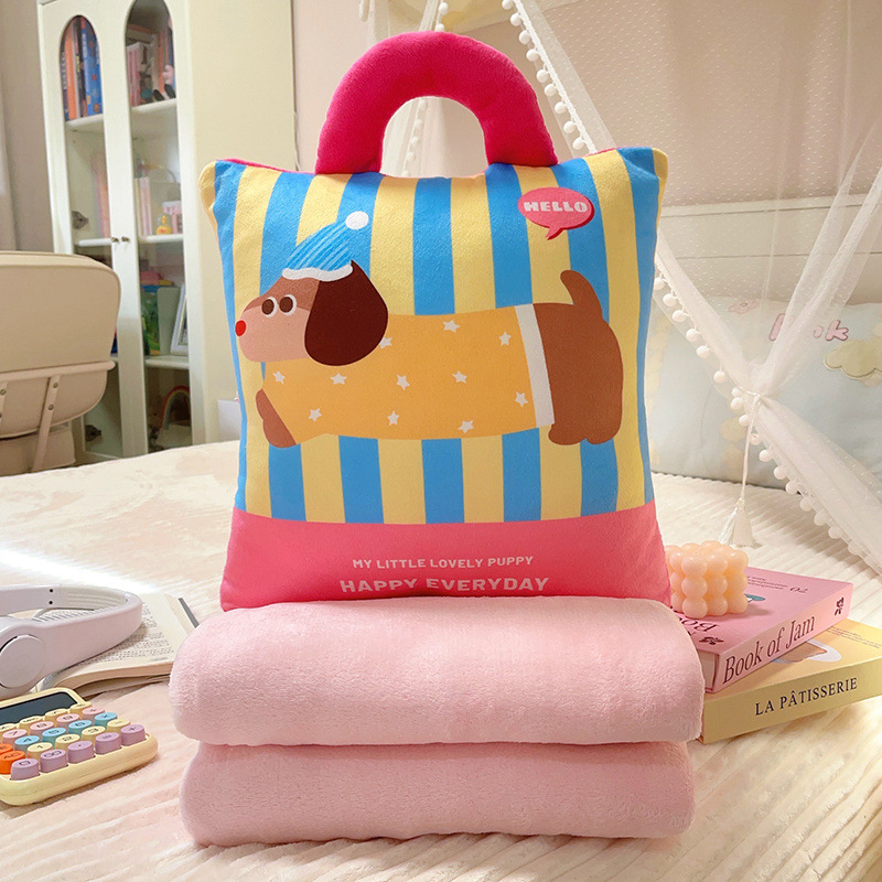 可爱多巴胺小狗抱枕毯宿舍办公室女生抱枕毯子二合一汽车午睡加厚
