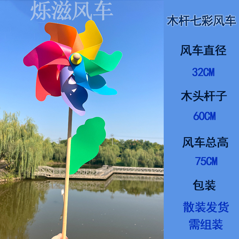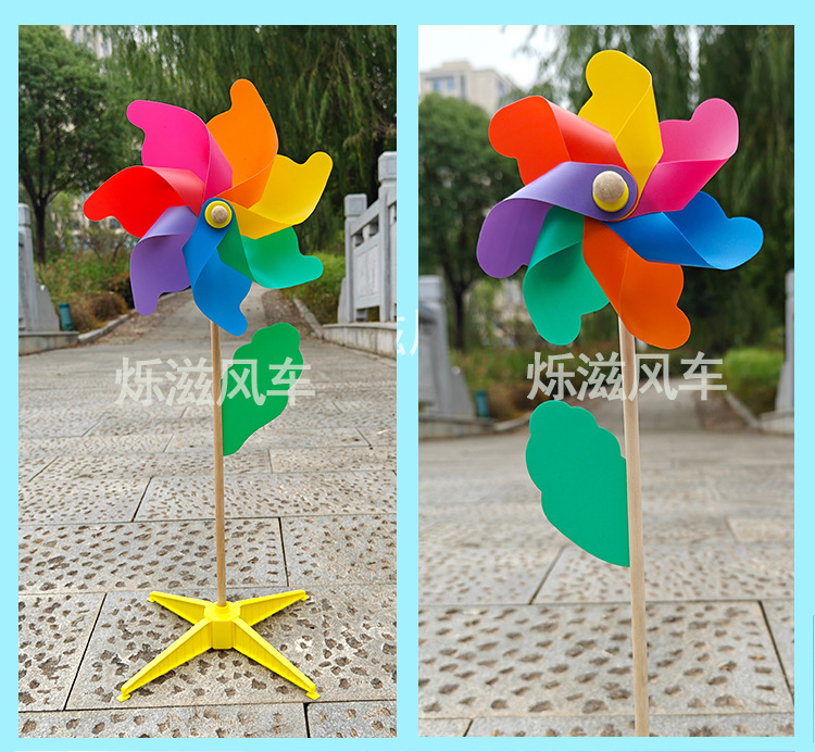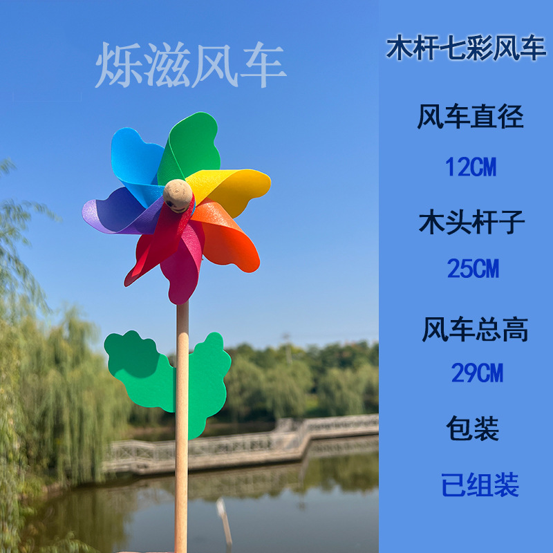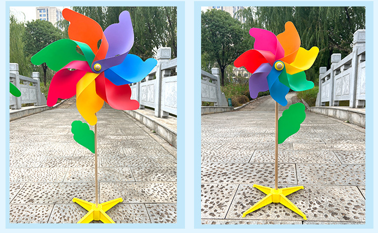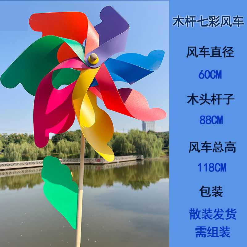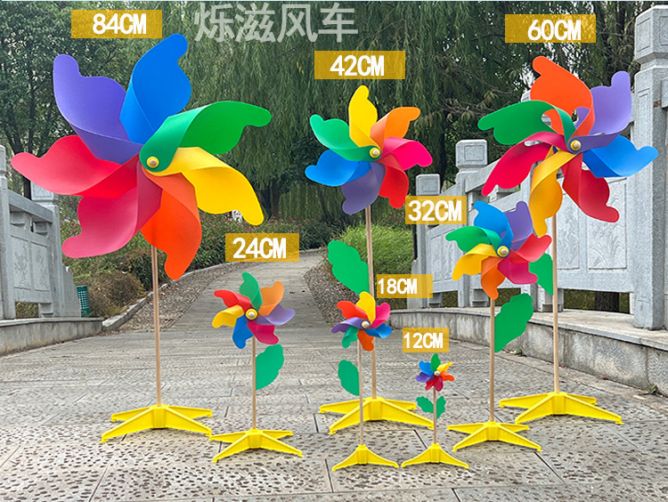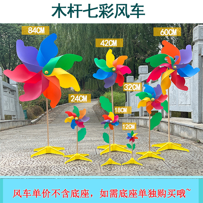木杆七彩大风车批发儿童玩具楼盘景区户外装饰幼儿园塑料底座风车