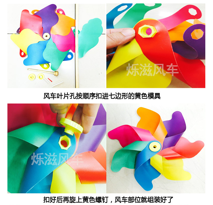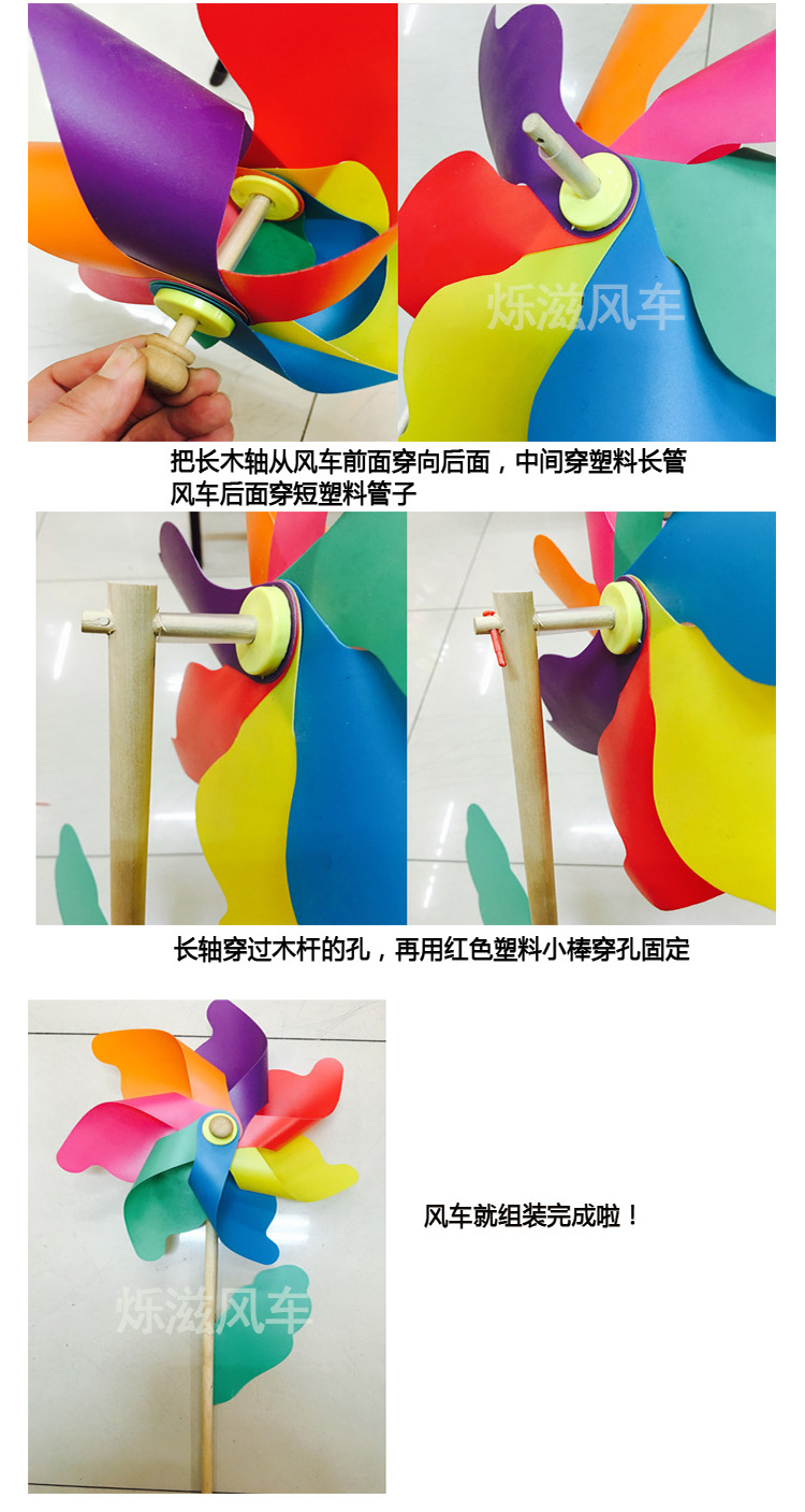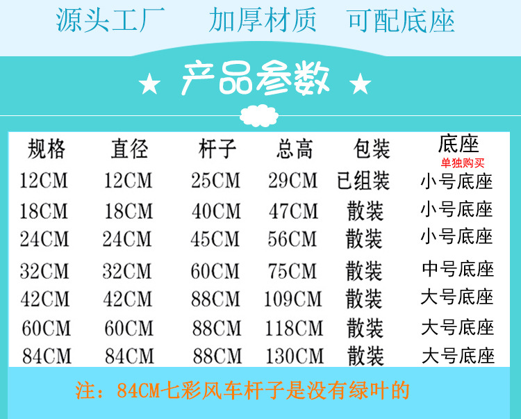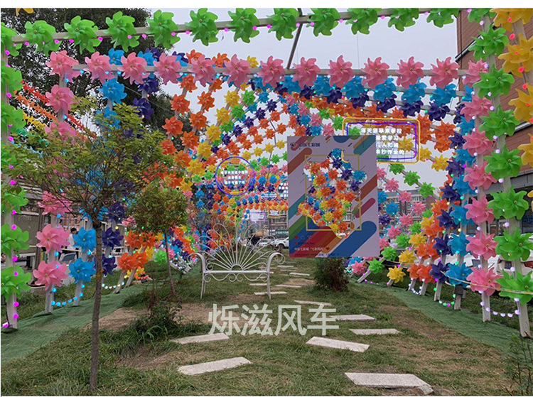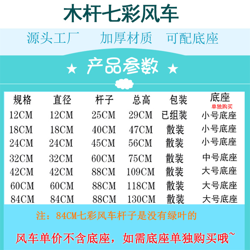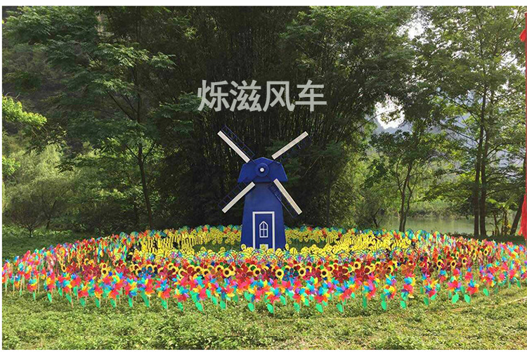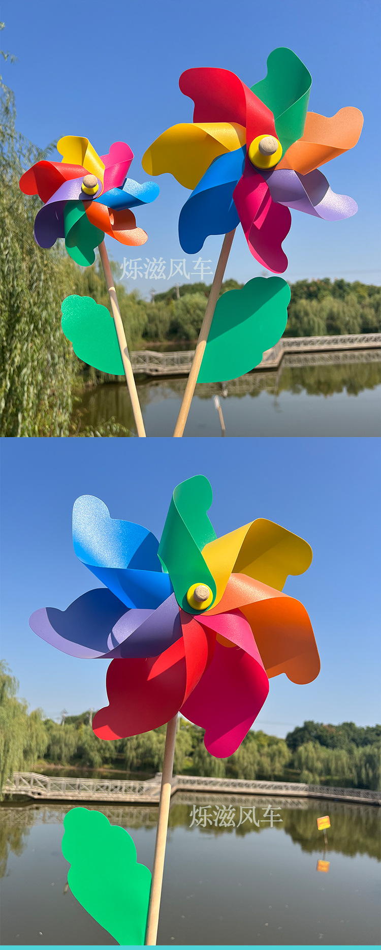 木杆七彩大风车批发儿童玩具楼盘景区户外装饰幼儿园塑料底座风车