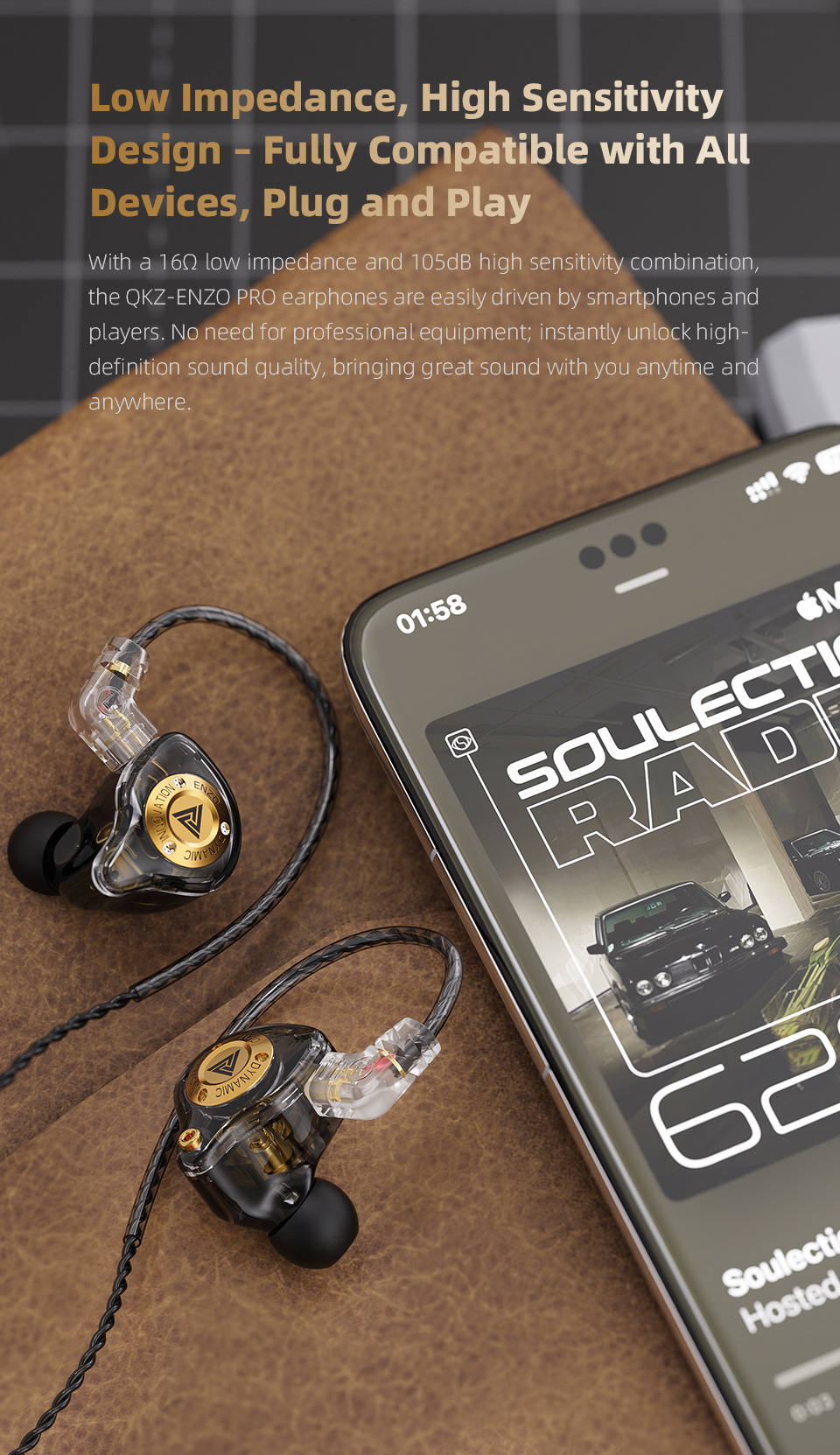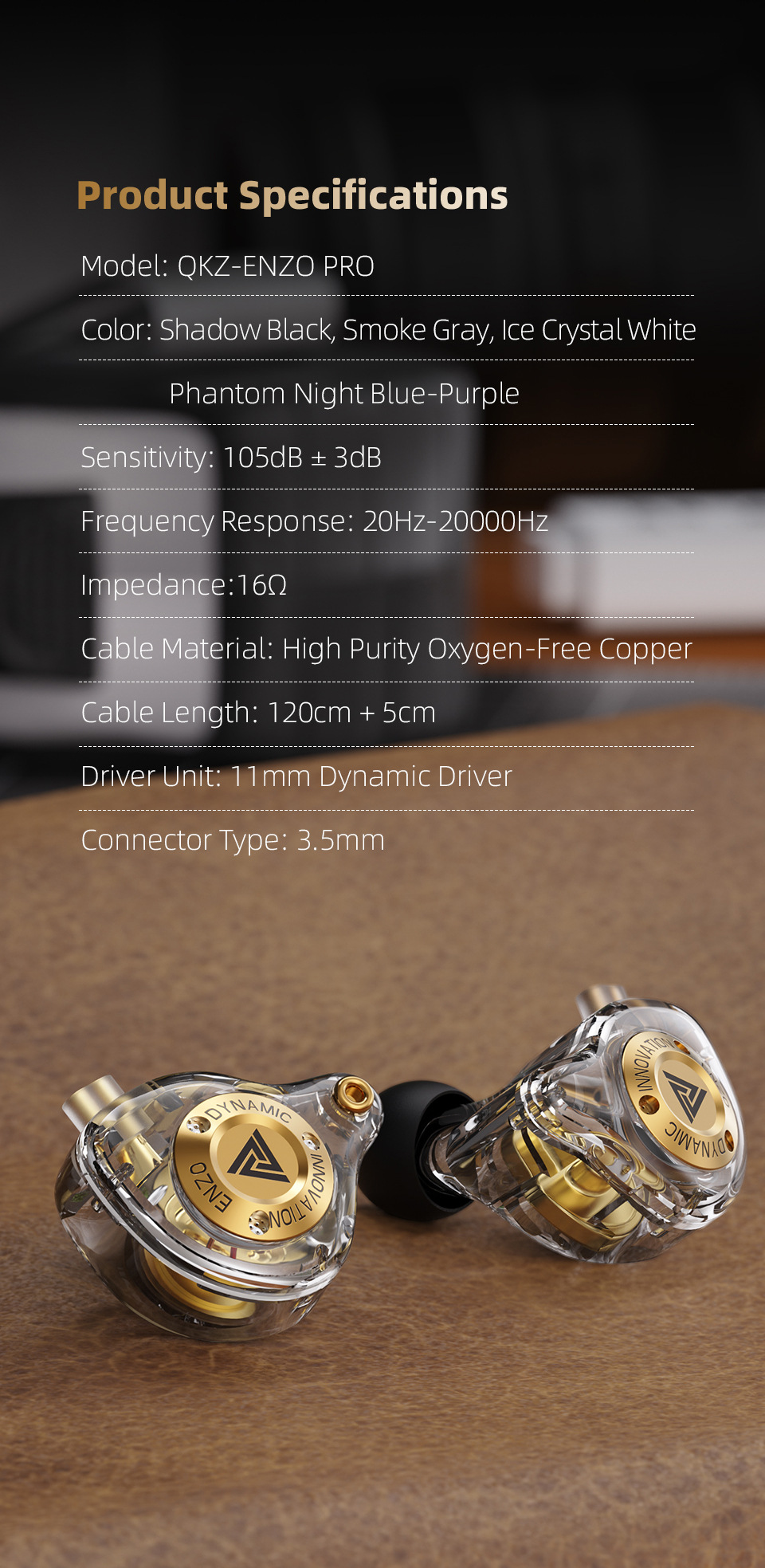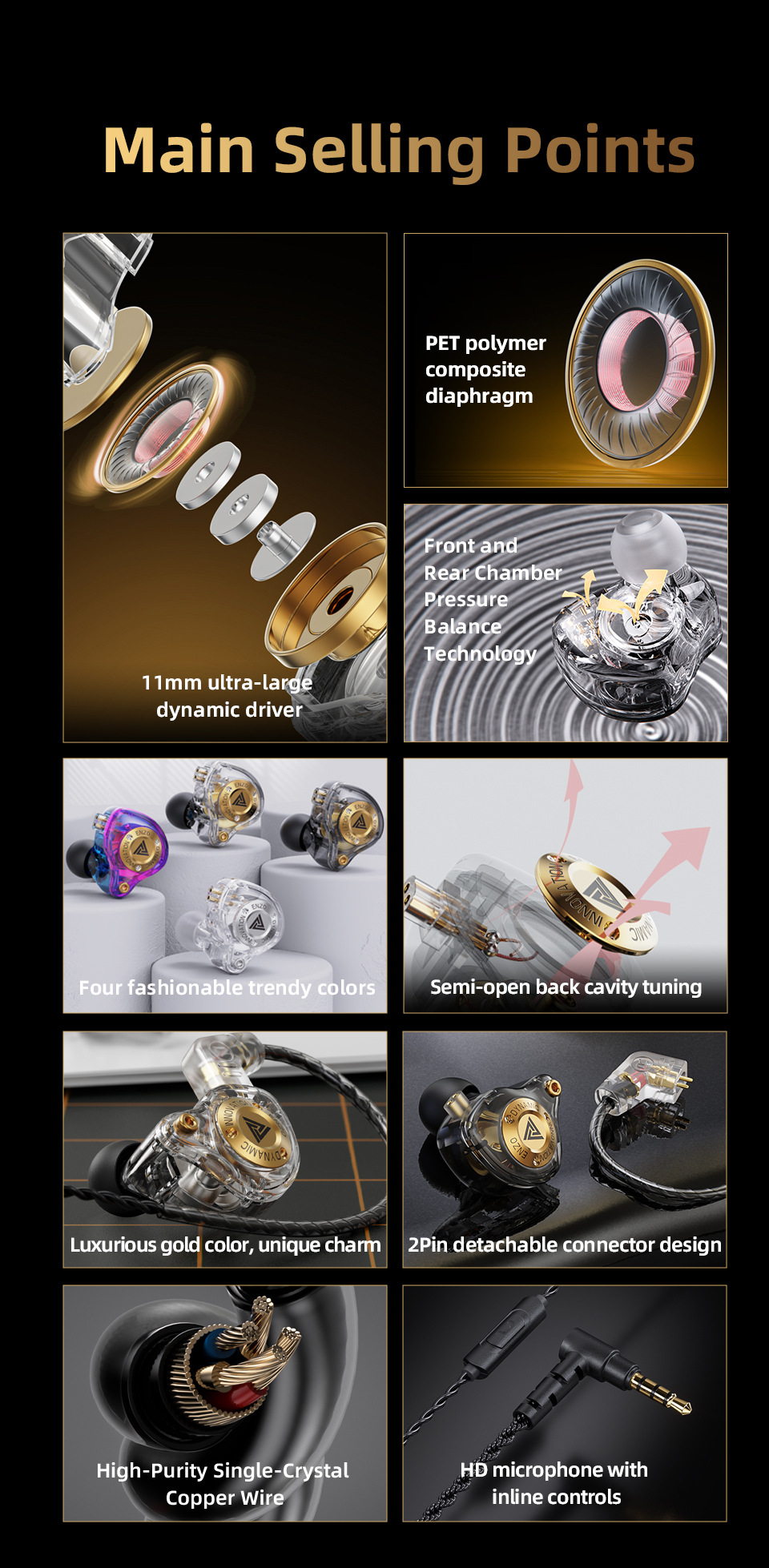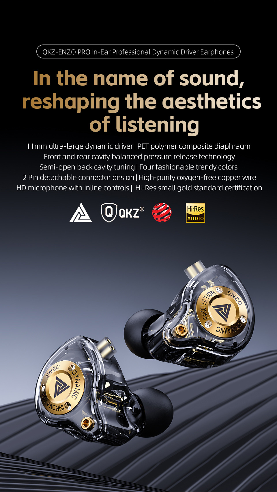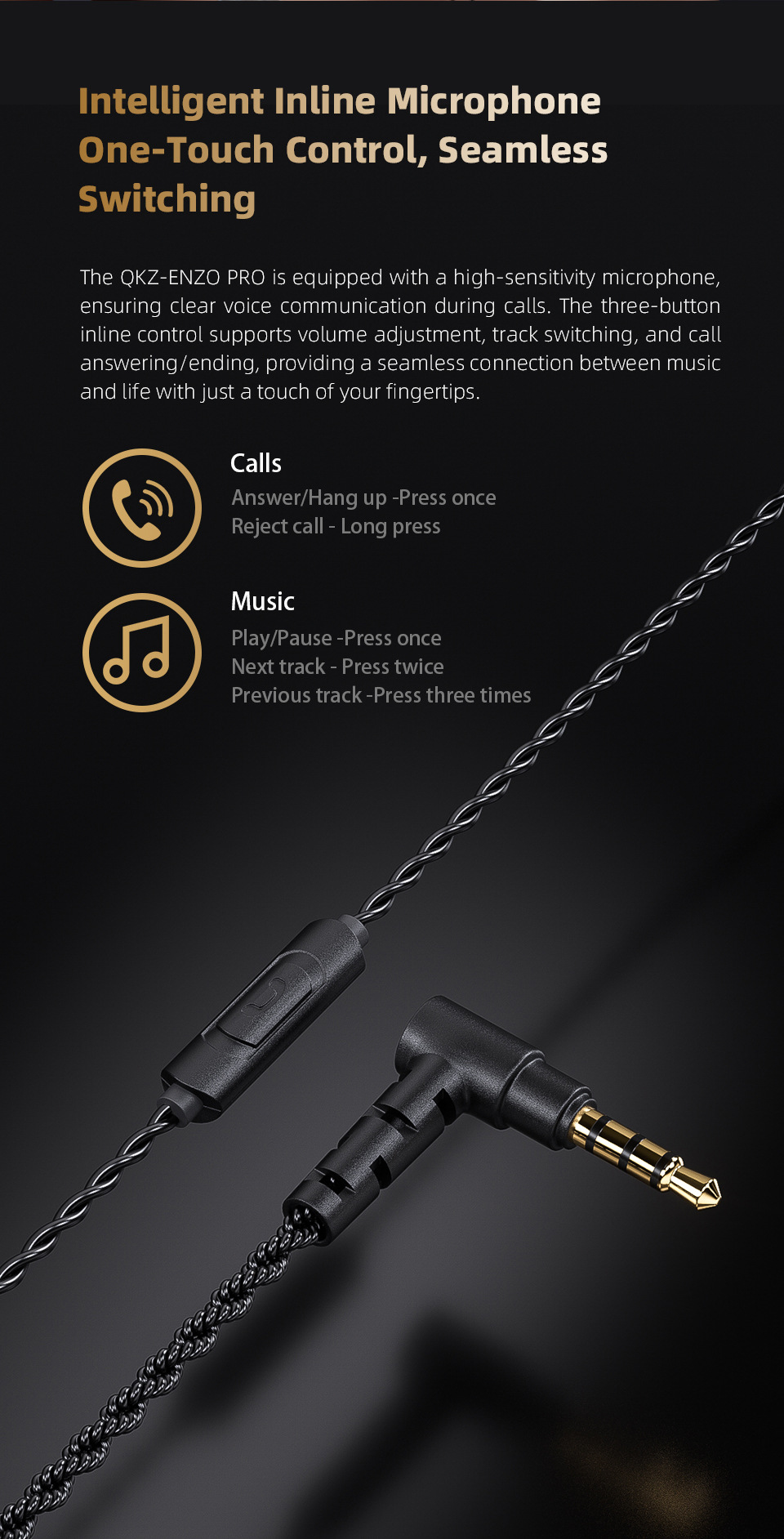 QKZ ENZO PRO 恩佐手机耳机 入耳式重低音线控可换线拆可拆卸耳机