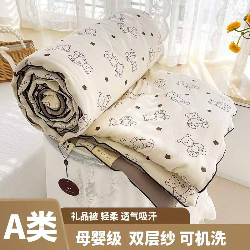 A类母婴级双层纱夏凉被大豆纤维被卡通印花可机洗空调礼品被批发