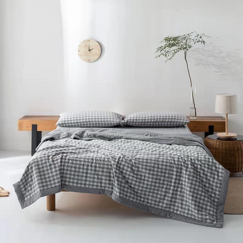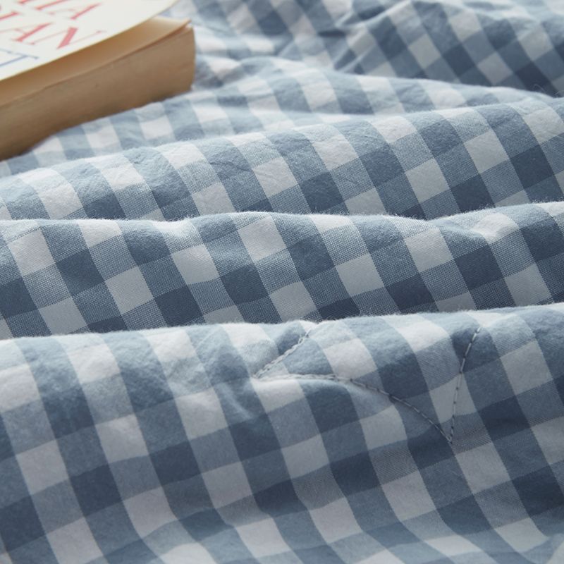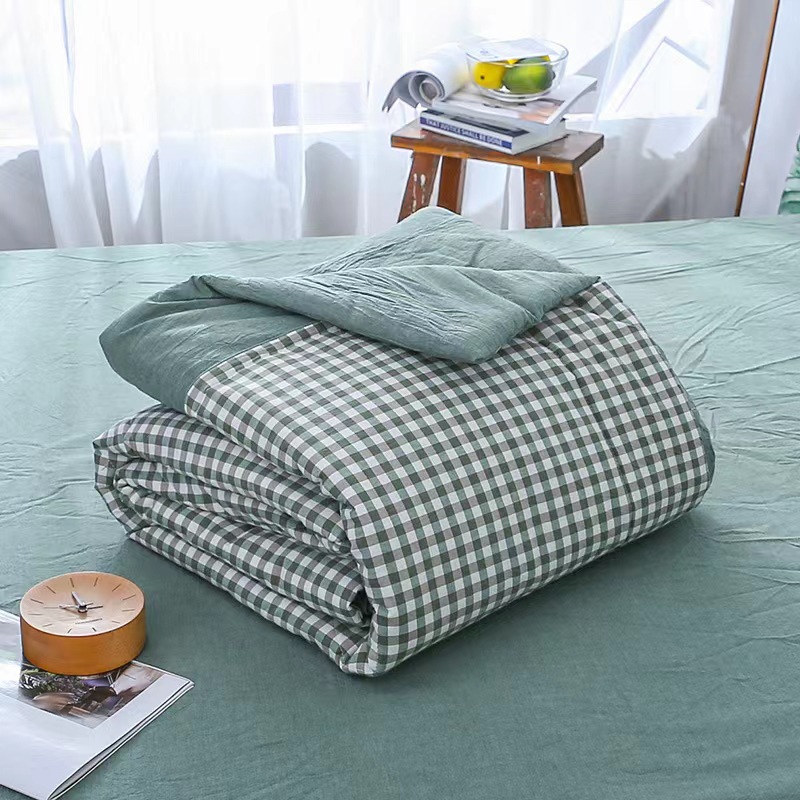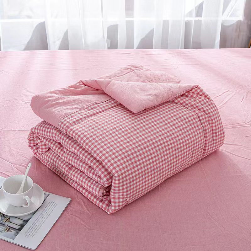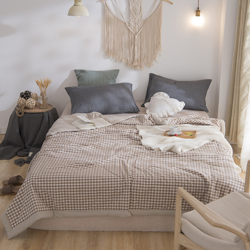 水洗棉夏被色织无印格子薄单人双人可洗空调被儿童夏凉被一件代发