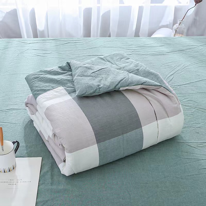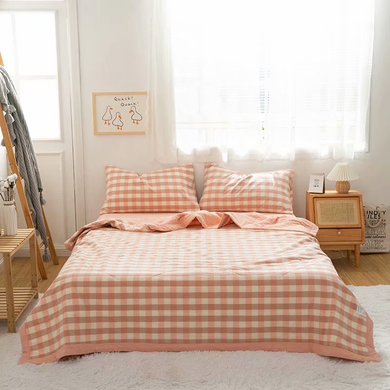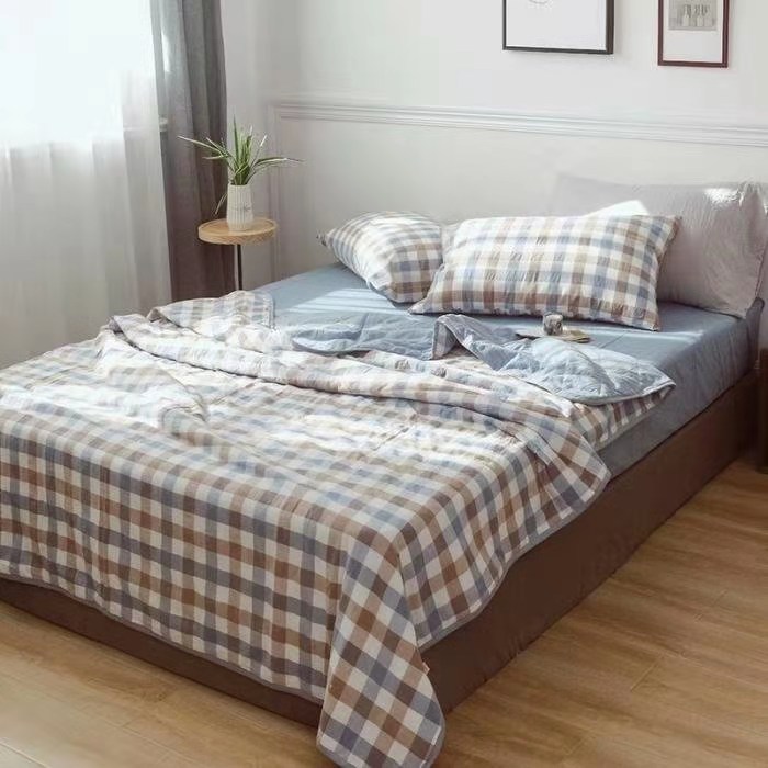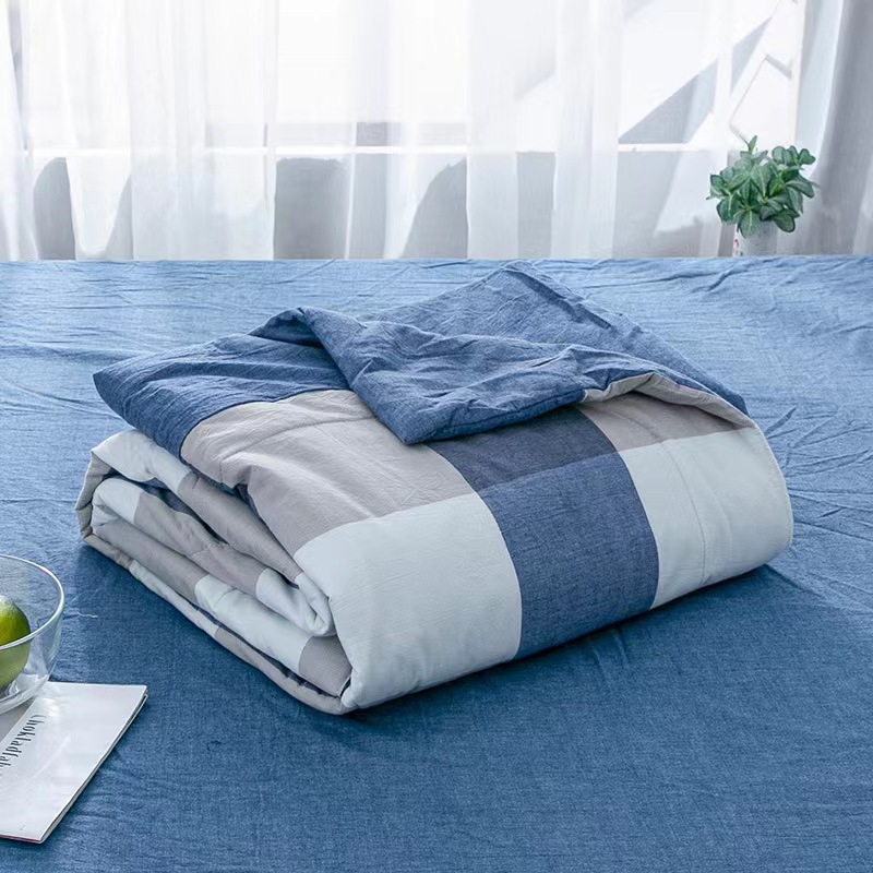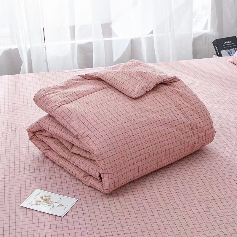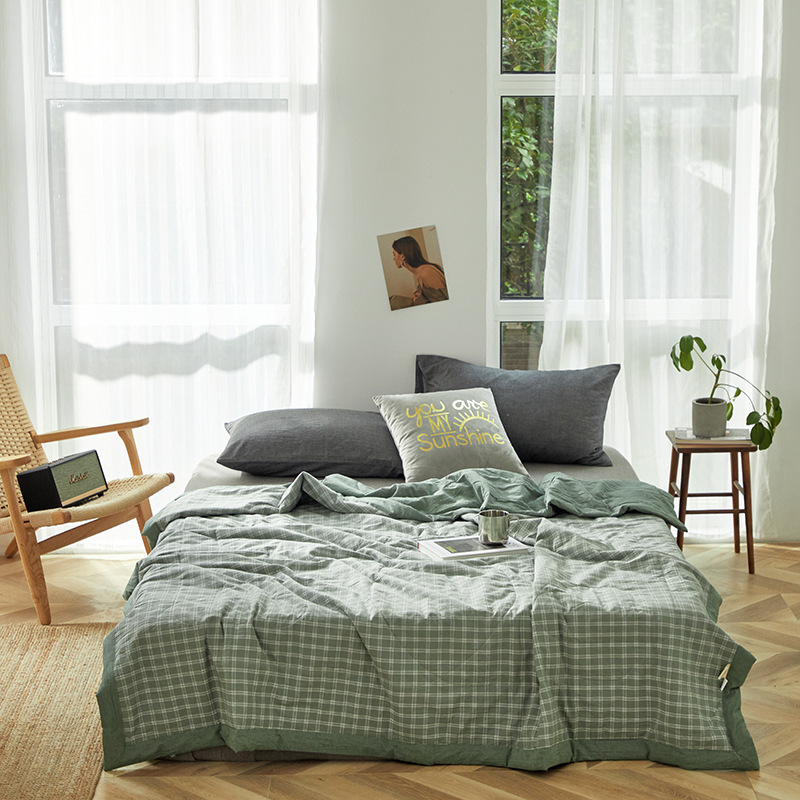 水洗棉夏被色织无印格子薄单人双人可洗空调被儿童夏凉被一件代发