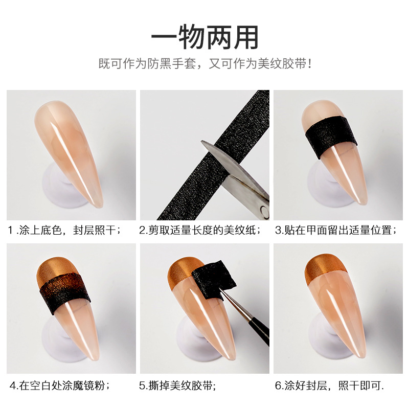 黑色美纹纸胶带美甲工具不透光物理防照黑可手撕做指甲黑胶带批发