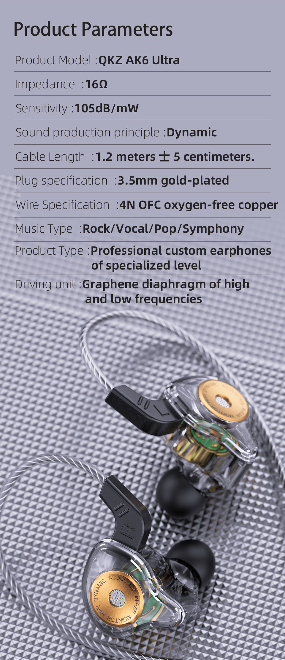 QKZ AK6-Ultra入耳式动圈耳机 手机监听耳机线控带麦运动跑步耳机