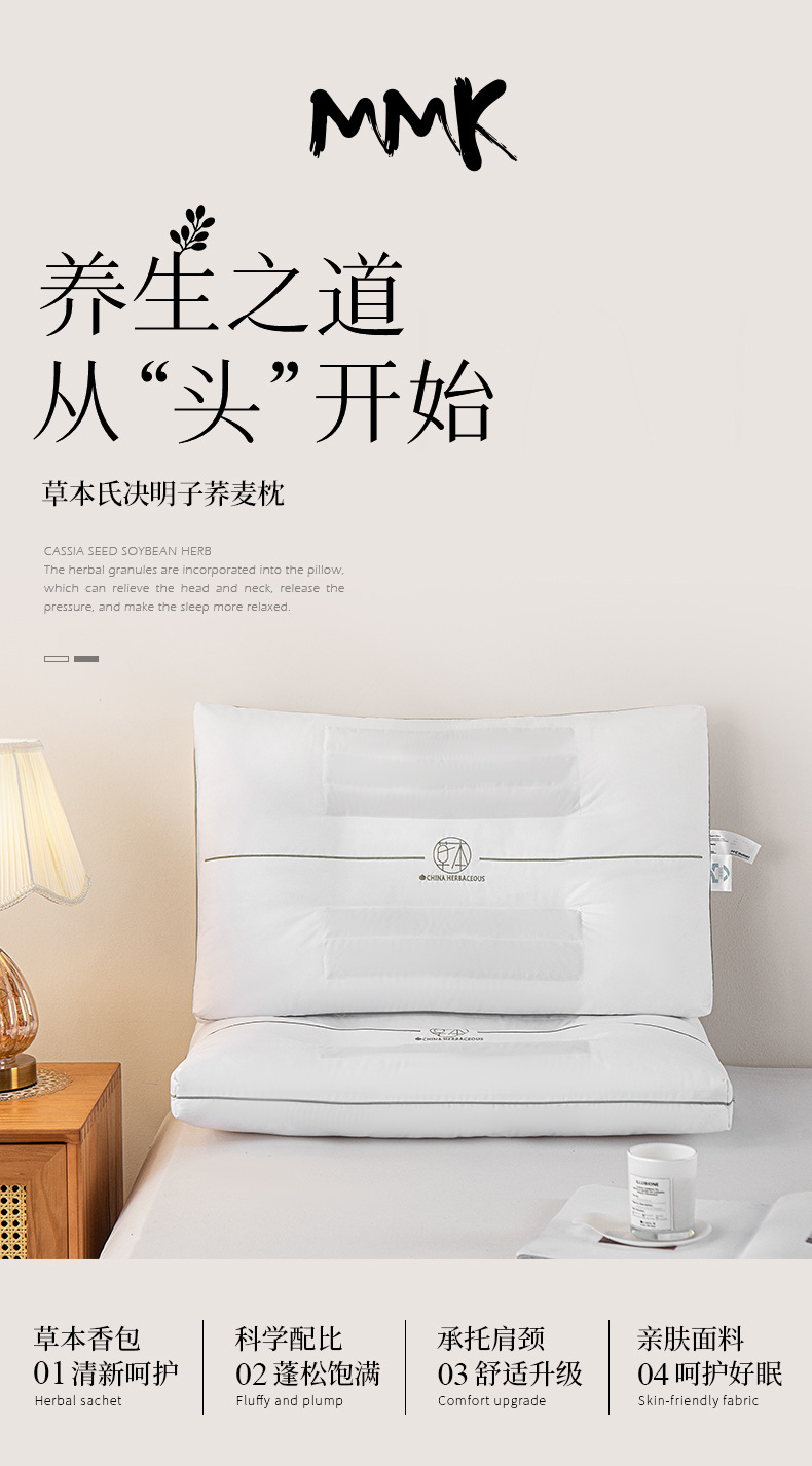 多喜爱美眠康自然草木单人荞麦枕决明子家用大豆枕芯护颈椎蓬松枕
