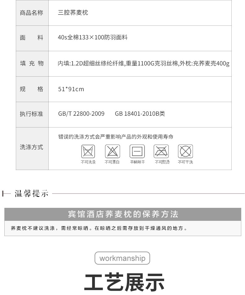 星级酒店全棉枕芯民宿荞麦枕 宾馆旅店住宿酒店布草床上用品批发