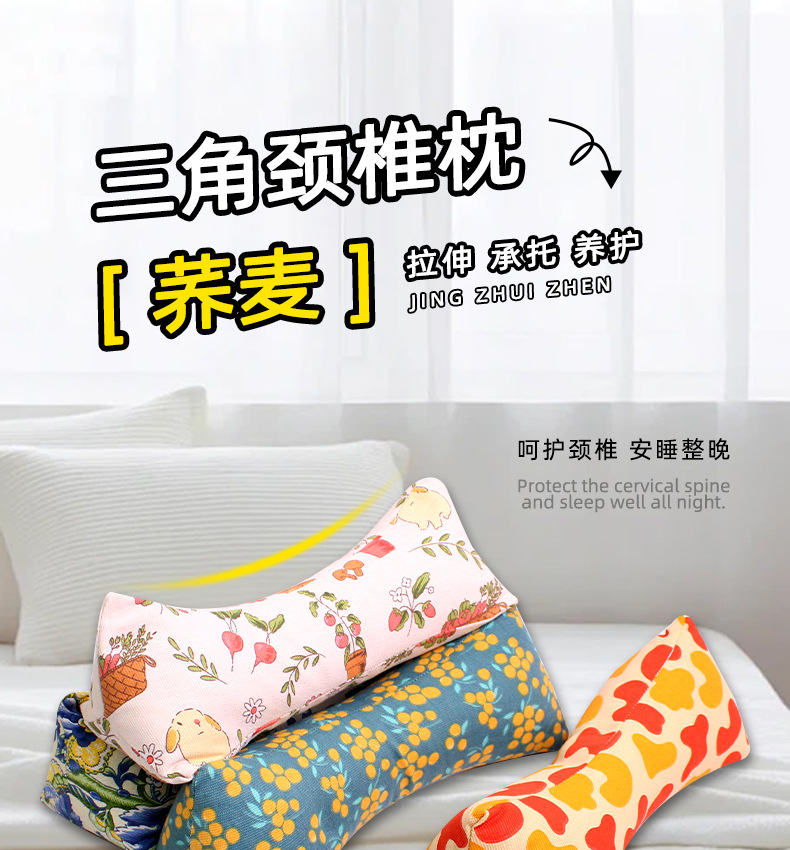荞麦壳三角颈椎枕护颈睡眠枕多功能家用颈椎枕菱形护颈枕荞麦养生