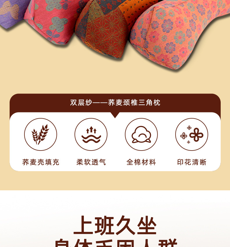 荞麦壳三角连体枕,荞麦壳三角枕,荞麦枕,三角枕,荞麦三角枕,颈椎枕,冰豆豆颈椎枕,三角连体枕