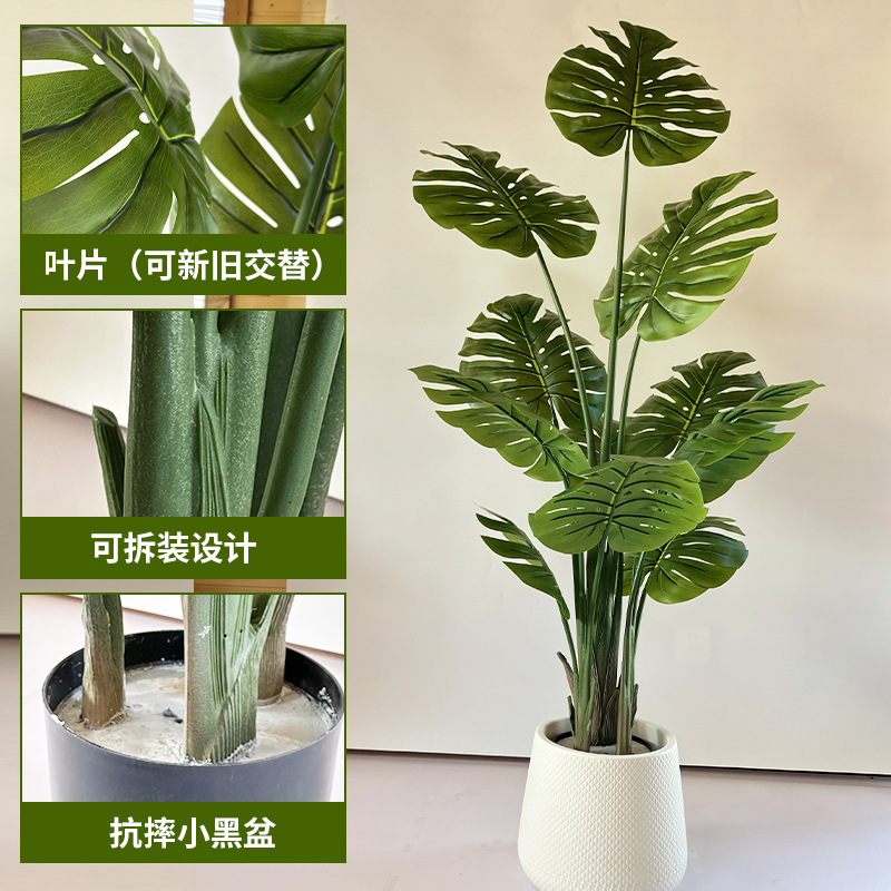 仿真绿植高级感连体杆龟背竹客厅酒店软装假花落地大盆栽室内造景