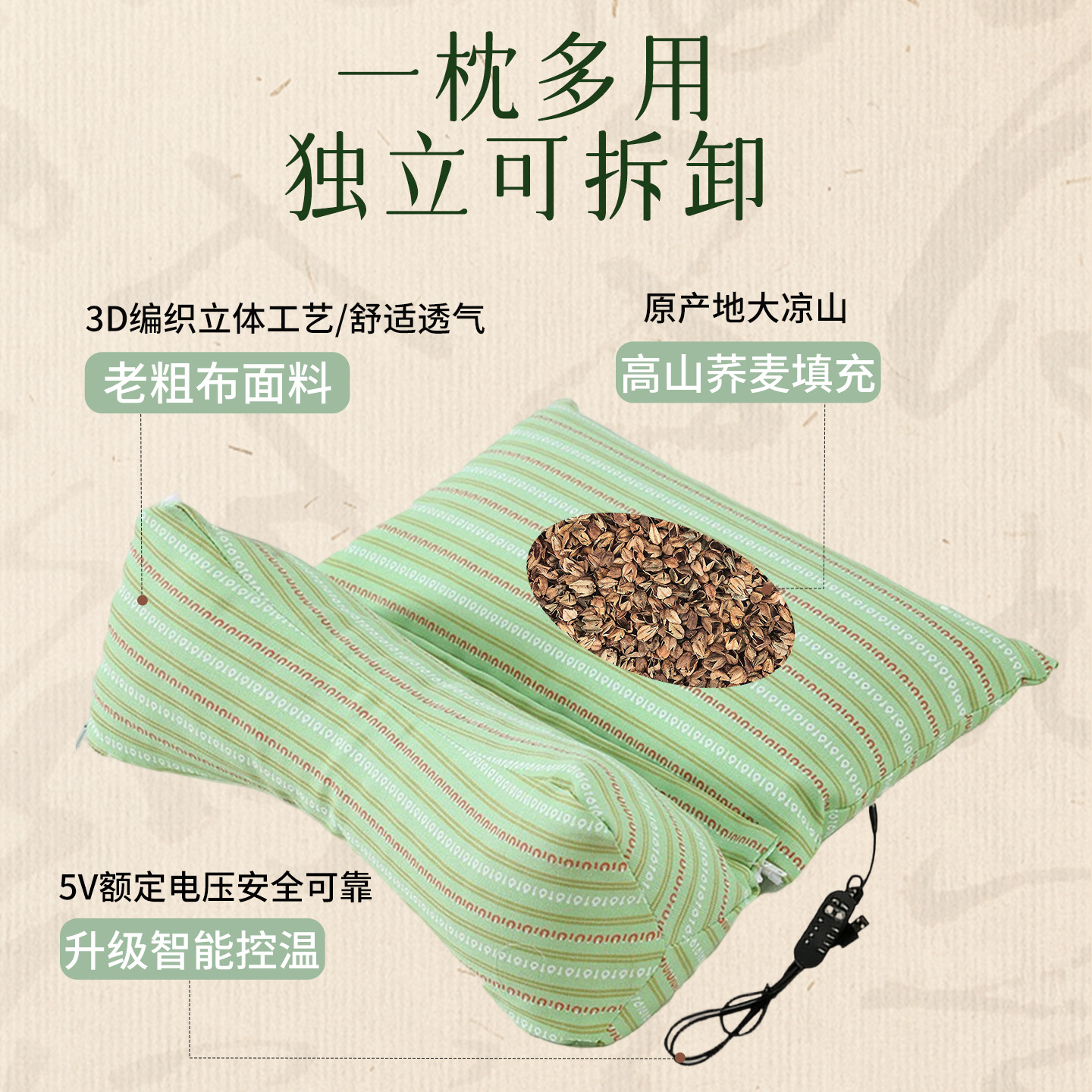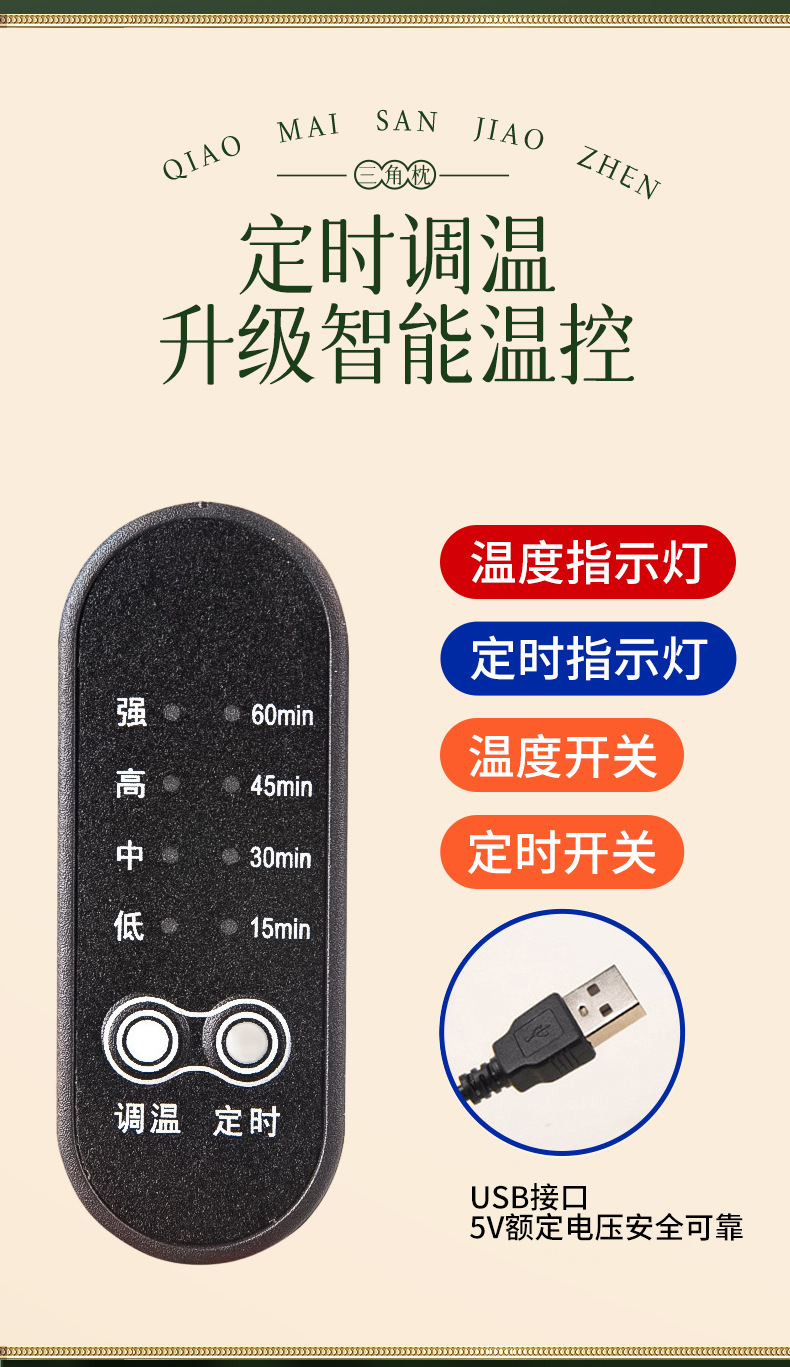 电加热颈椎三角枕可拆卸护颈枕家用草本连体荞麦枕艾草枕趴睡枕