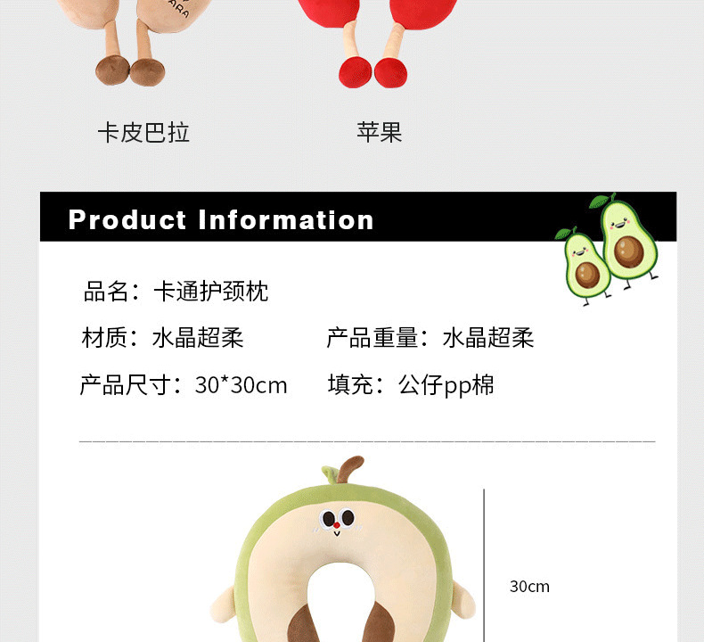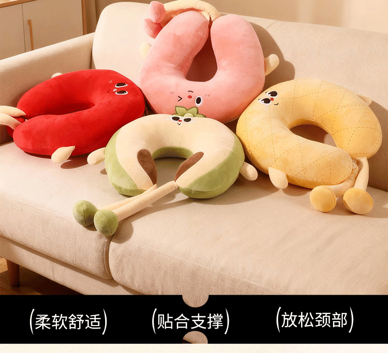 ins卡通可爱u型枕PP棉情侣款旅行外出坐车护颈枕办公室脖子靠枕