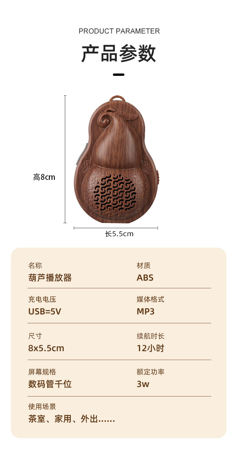 家用古典葫芦播放器24小时循环传统音乐机迷你便携充电小型唱歌机