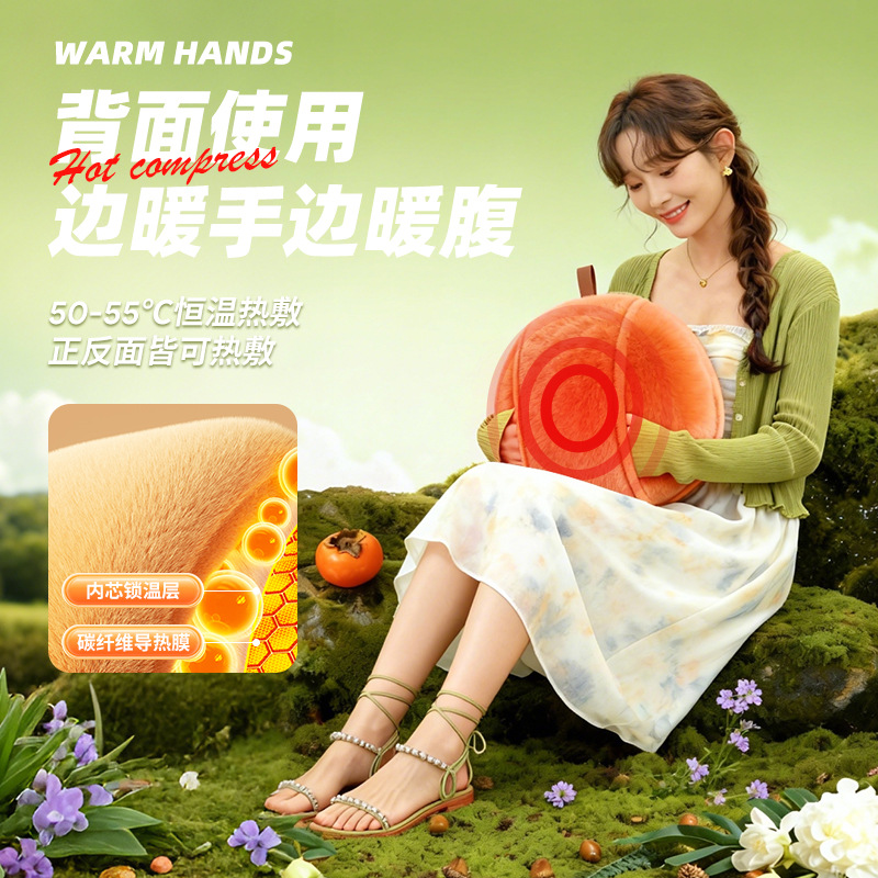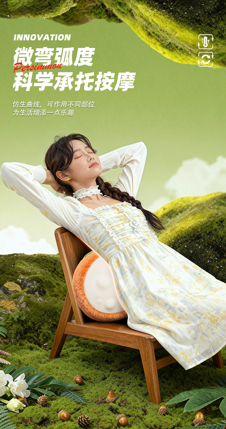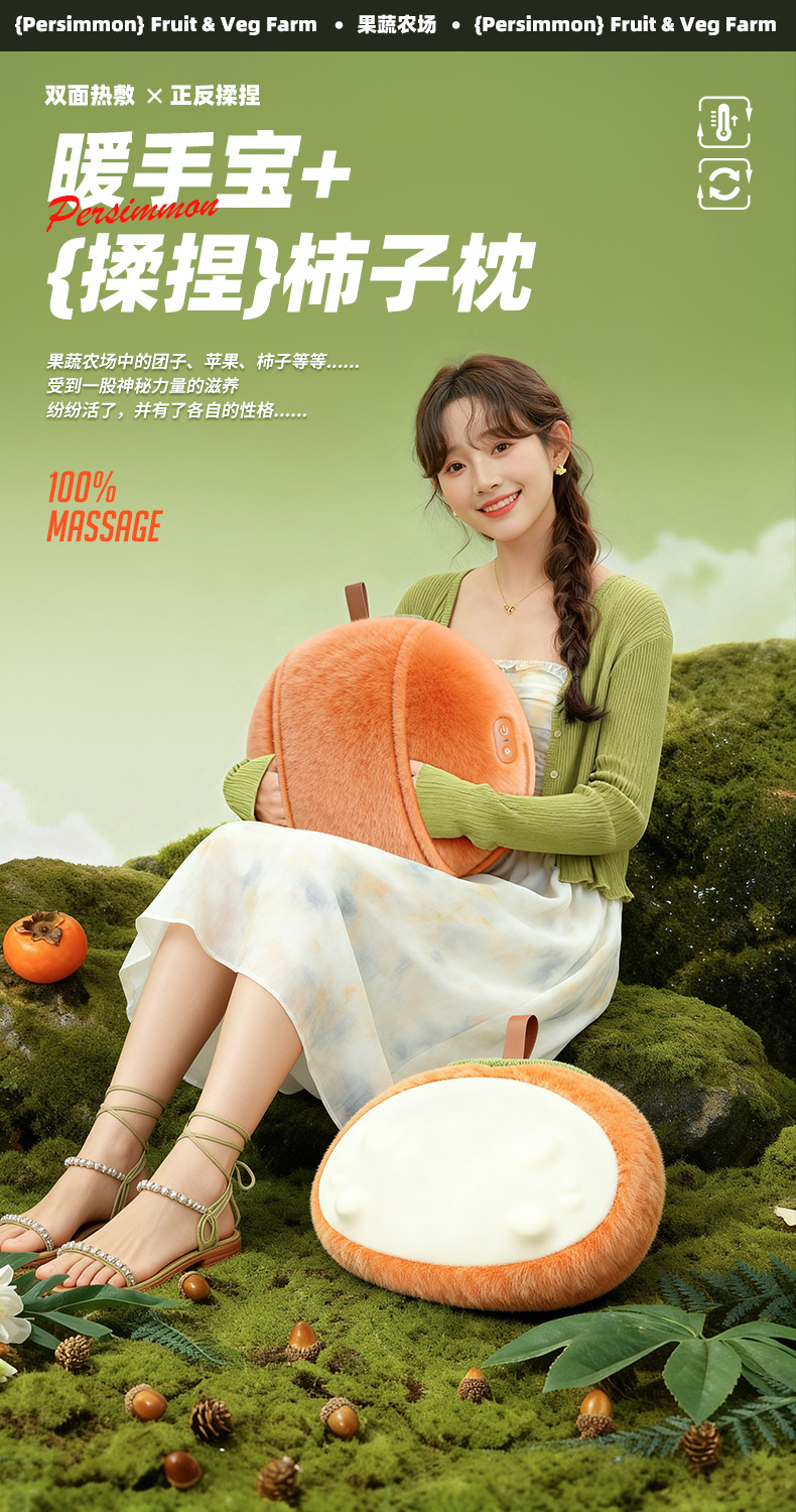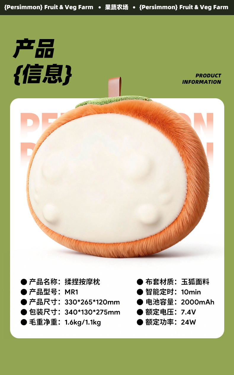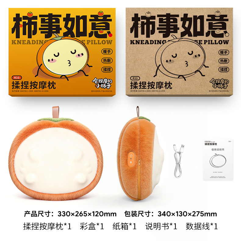 柿子按摩枕背部冬天新年礼品送礼家用保暖冬季充电热敷腰部按摩器