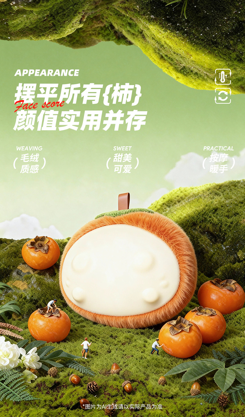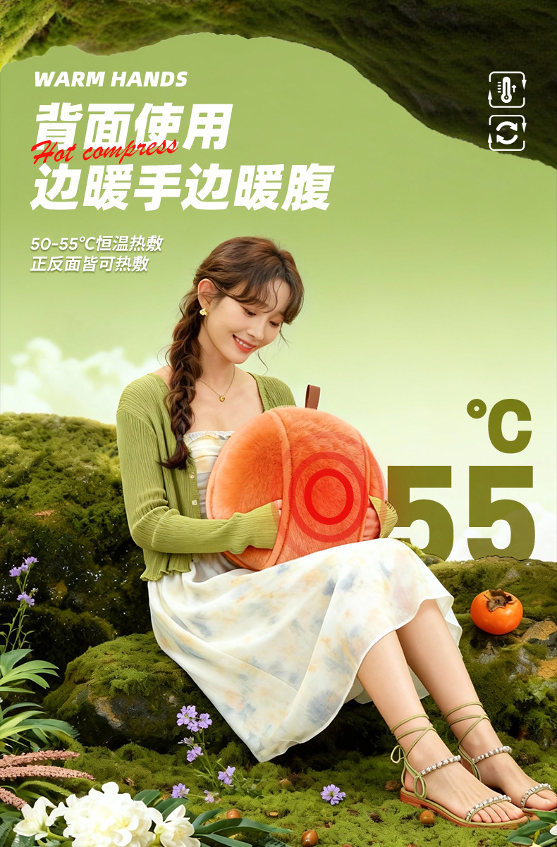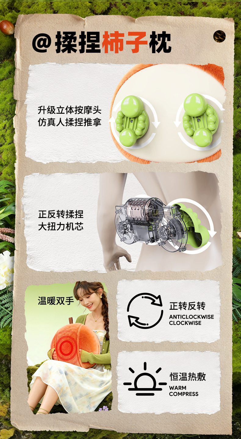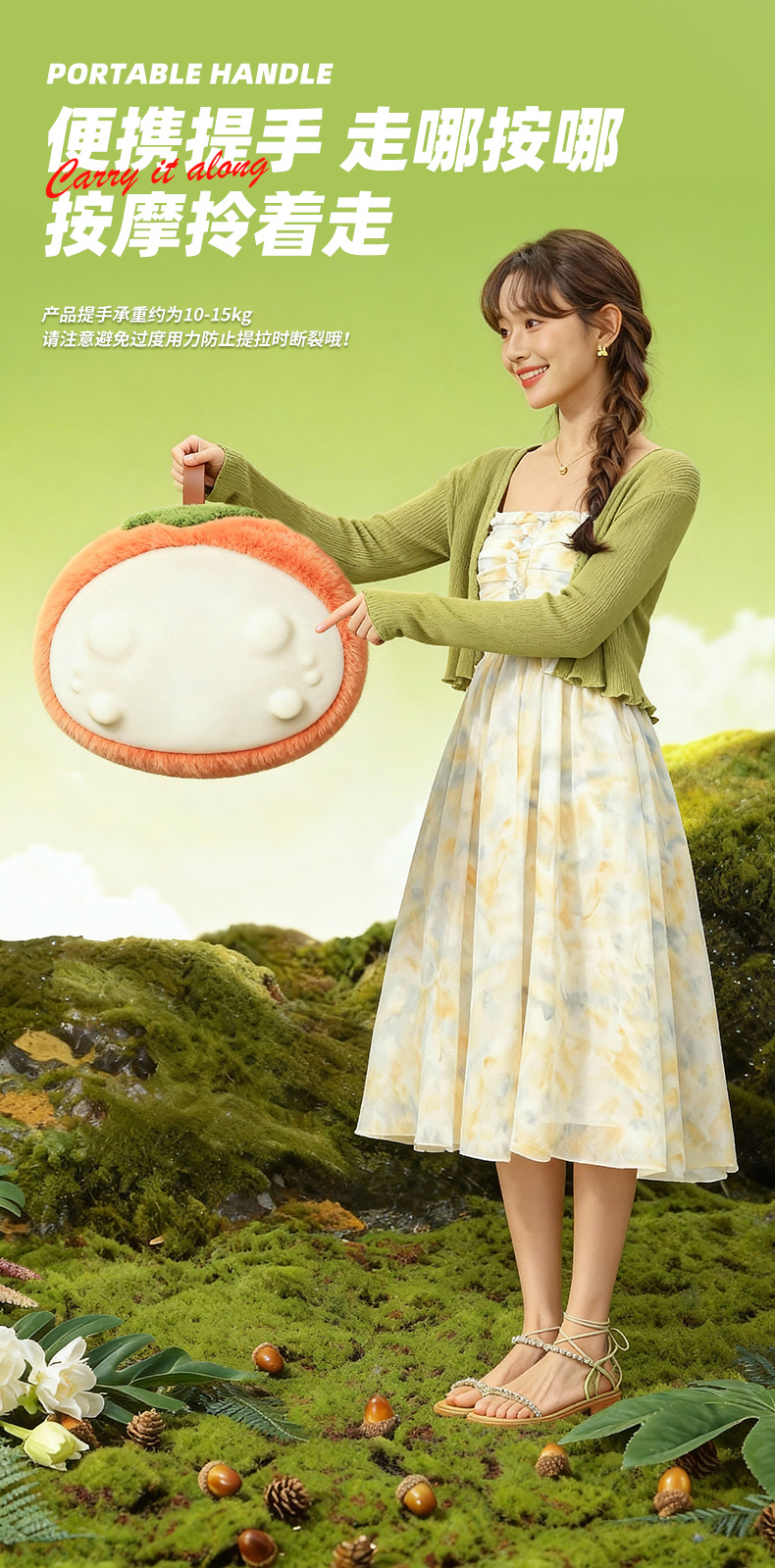 柿子按摩枕背部冬天新年礼品送礼家用保暖冬季充电热敷腰部按摩器