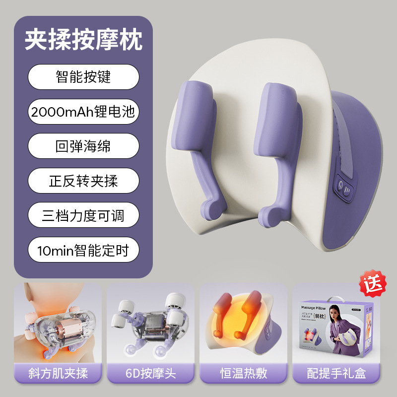 跨境亚马逊定制斜方肌按摩器 颈部夹揉颈椎按摩枕揉捏肩颈按摩仪