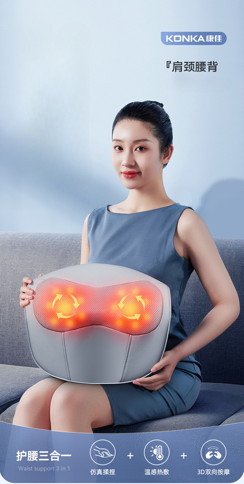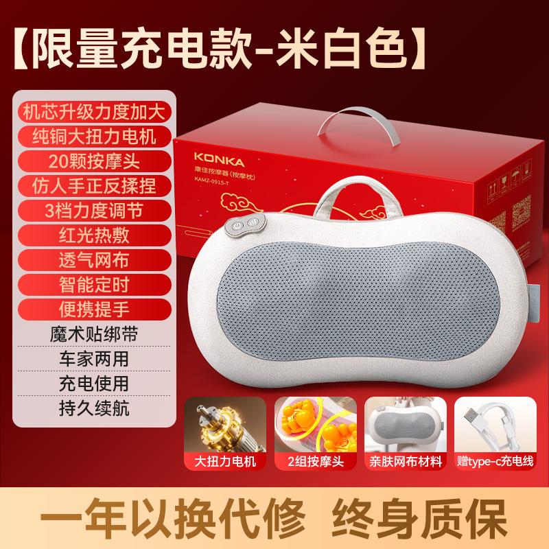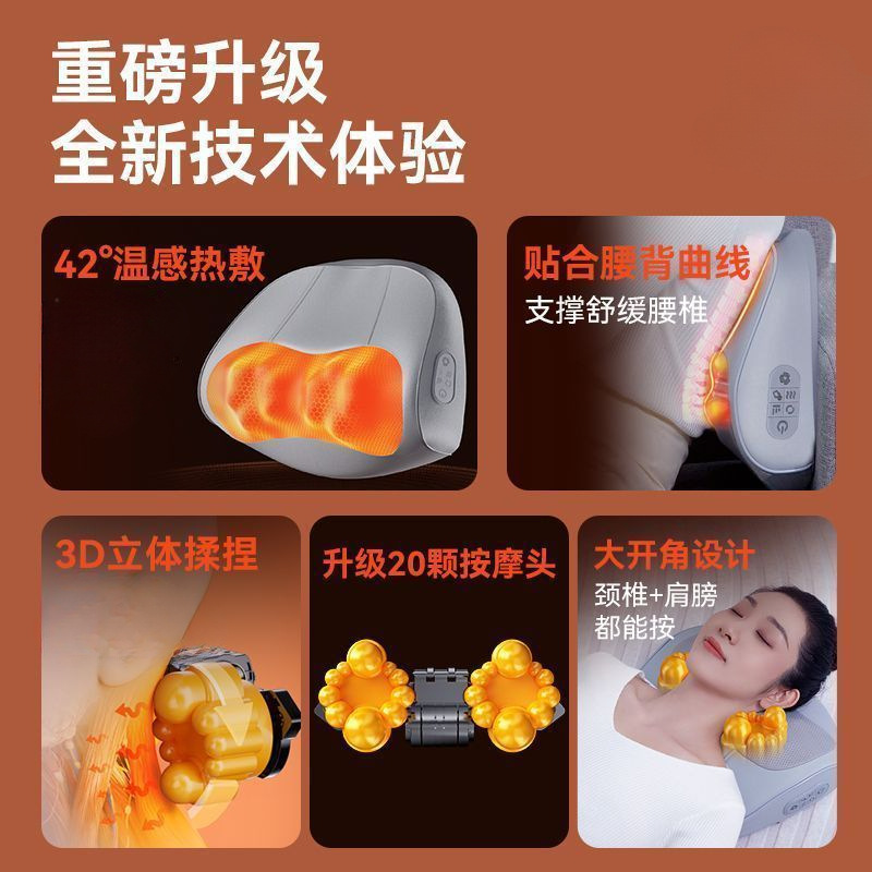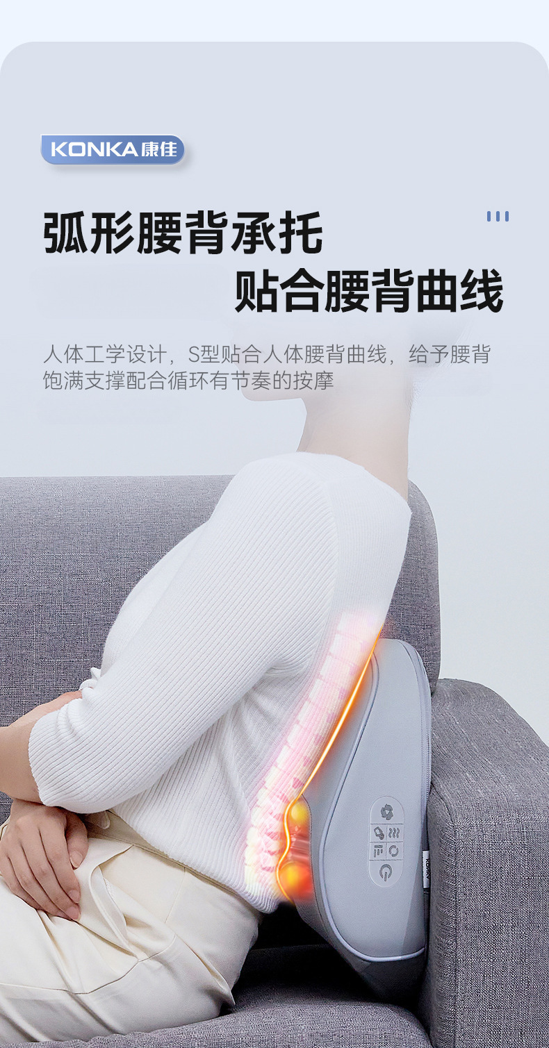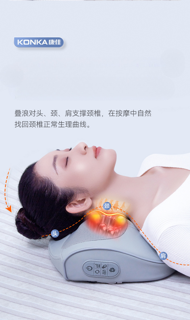康佳颈椎按摩枕腰部加热肩颈按摩仪靠枕揉捏热敷家用颈部按摩器