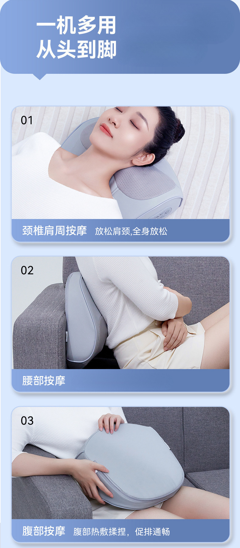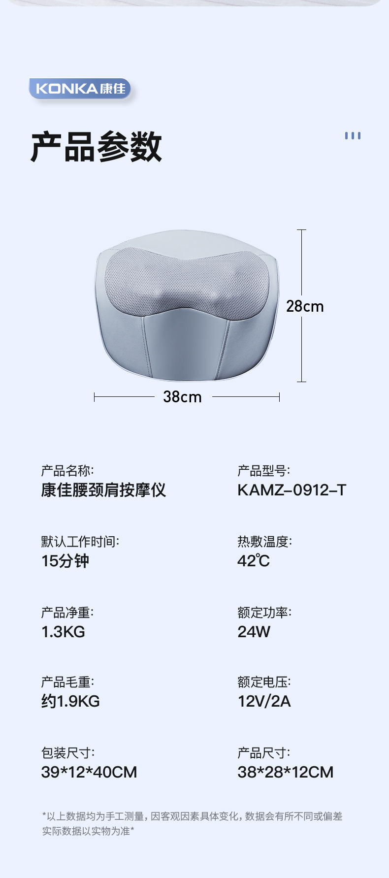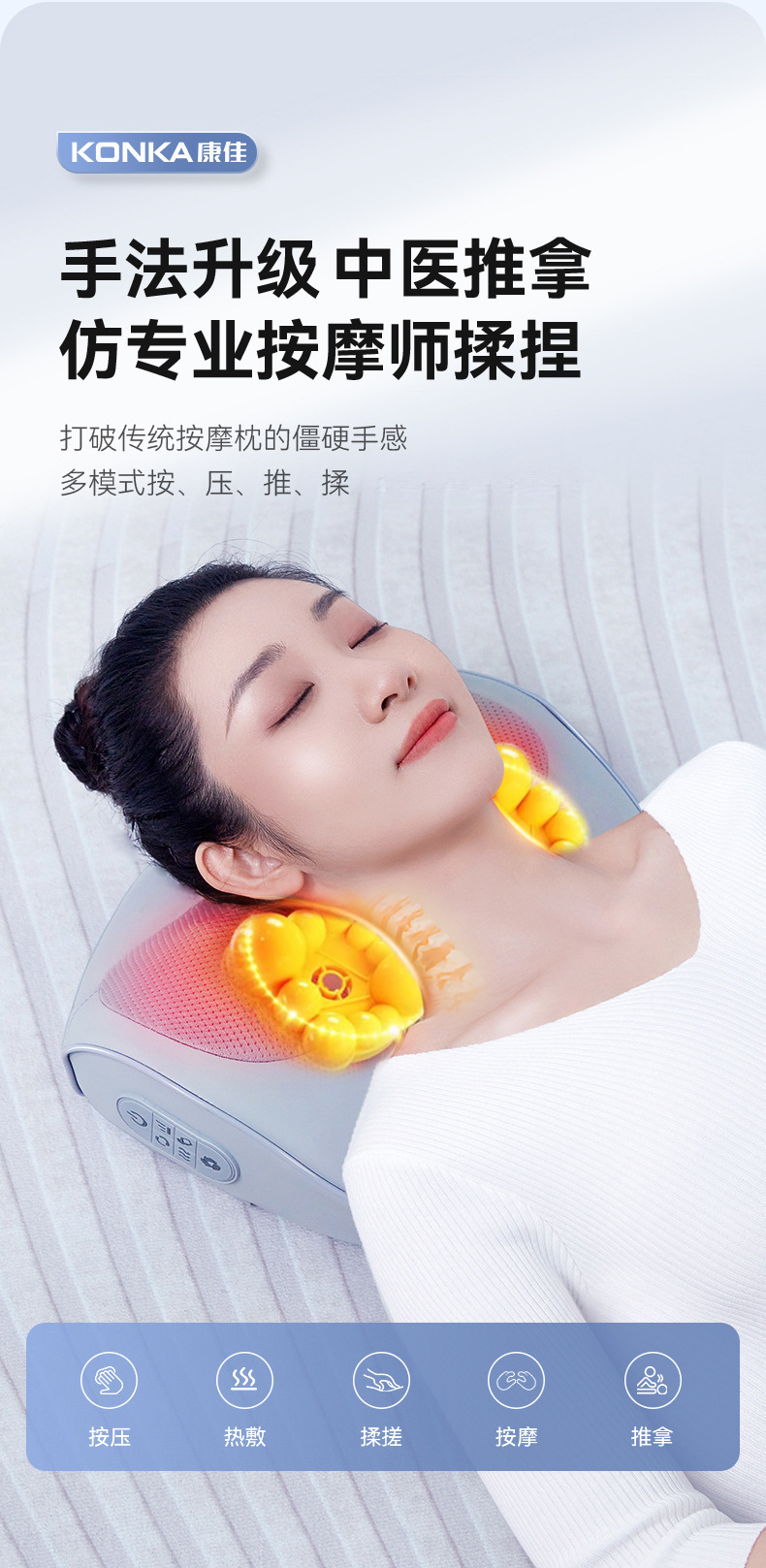 康佳颈椎按摩枕腰部加热肩颈按摩仪靠枕揉捏热敷家用颈部按摩器