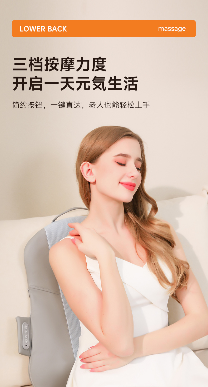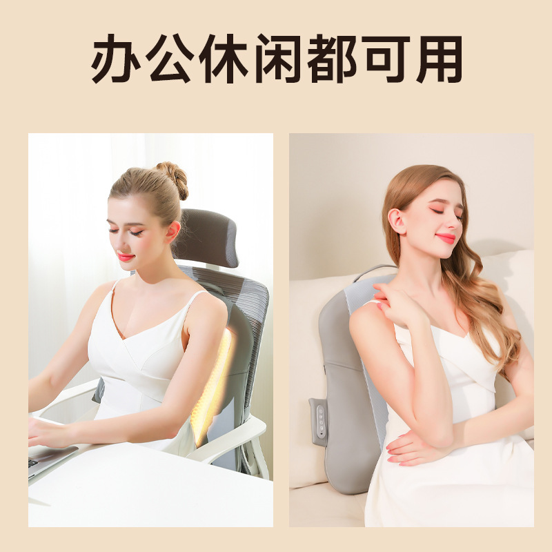 跨境按摩靠垫车载按摩仪肩颈腰背揉捏按摩器全身可用热敷按摩靠背