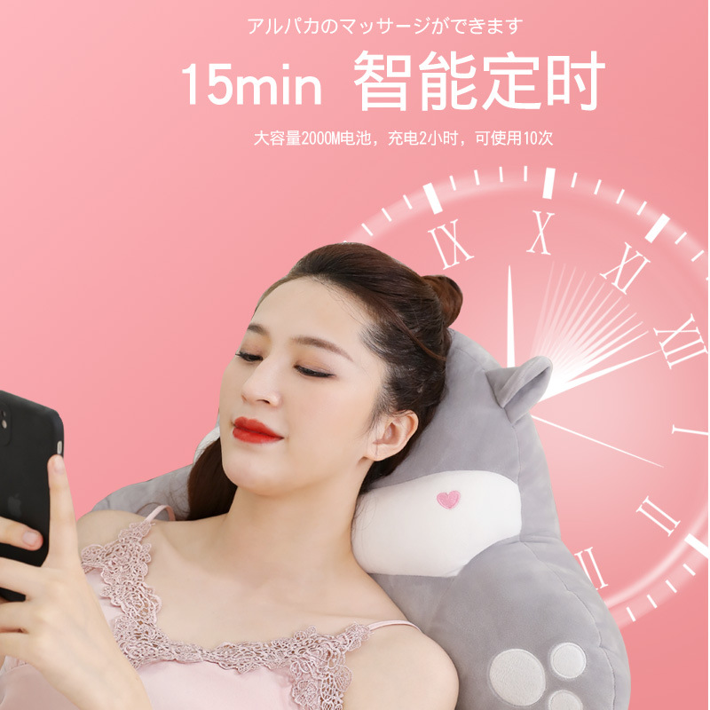 电动卡通按摩抱枕颈椎按摩腰部腹部背部按摩器多功能家用毛绒靠垫