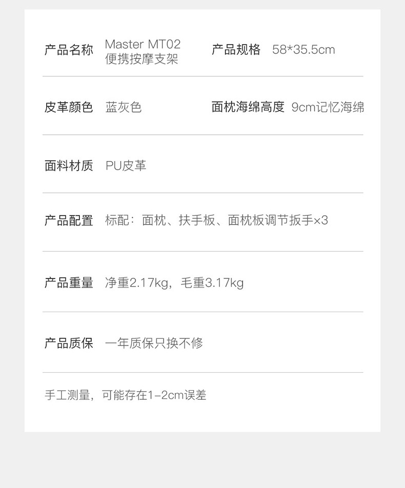 Master按摩枕MT02随身携带颈腰椎面枕美容床趴枕冬季温暖按摩体验