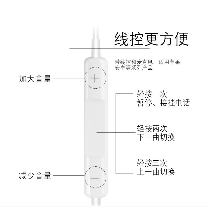 3.5mm入耳式运动带唛耳机适用苹果Iphone5手机彩色线控重低音耳机