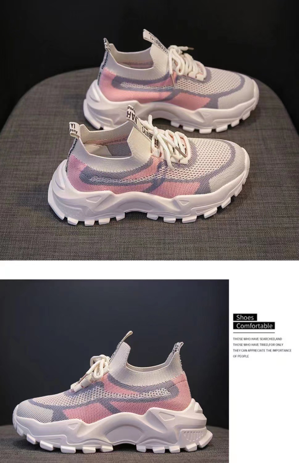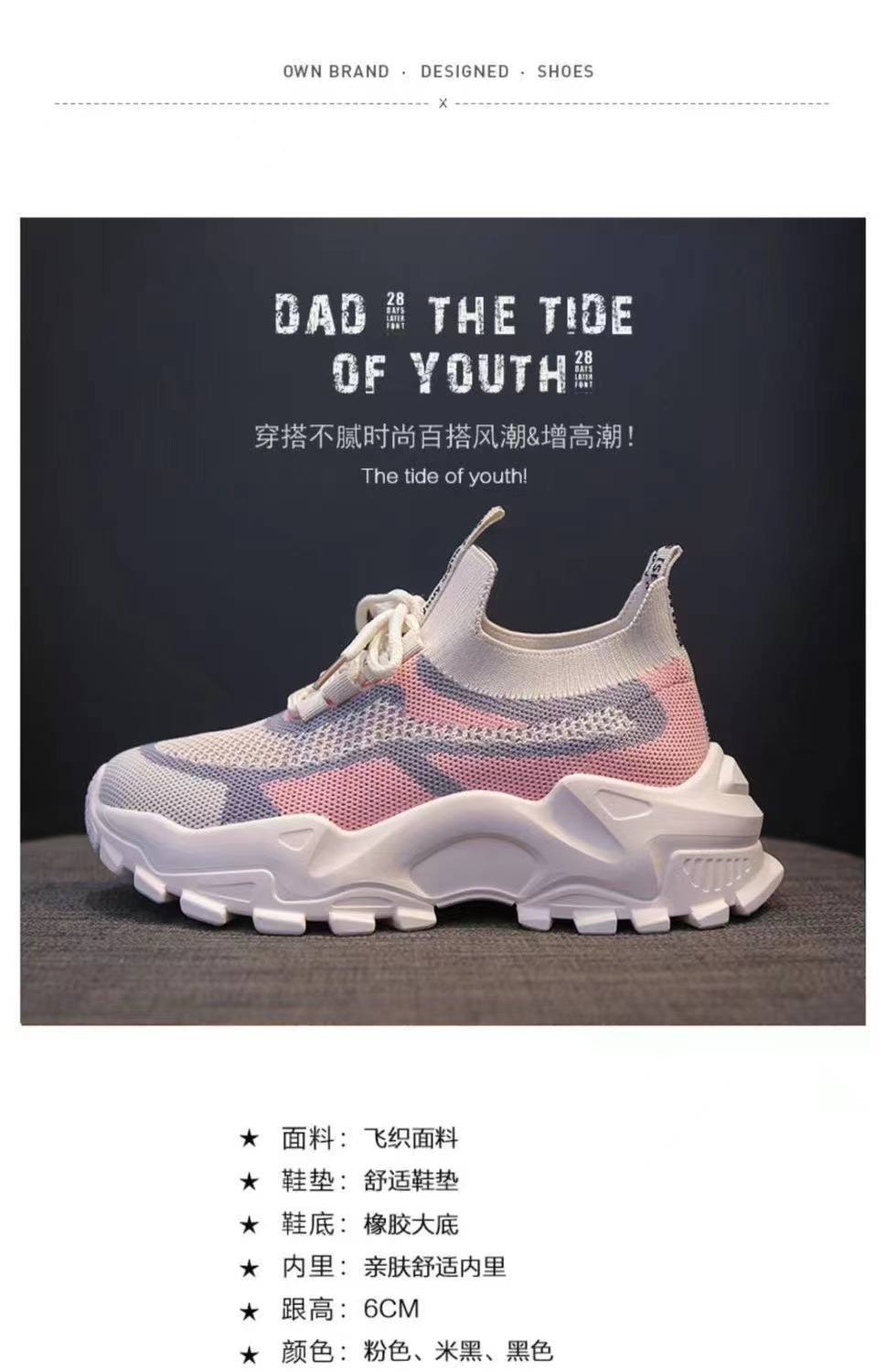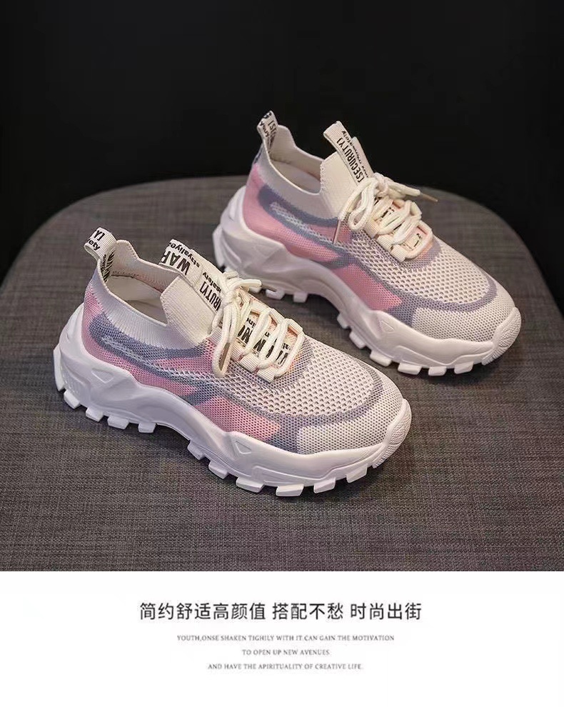 2023新款春夏季女飞织网布运动鞋厚底轻便休闲鞋跑步老爹鞋学生鞋