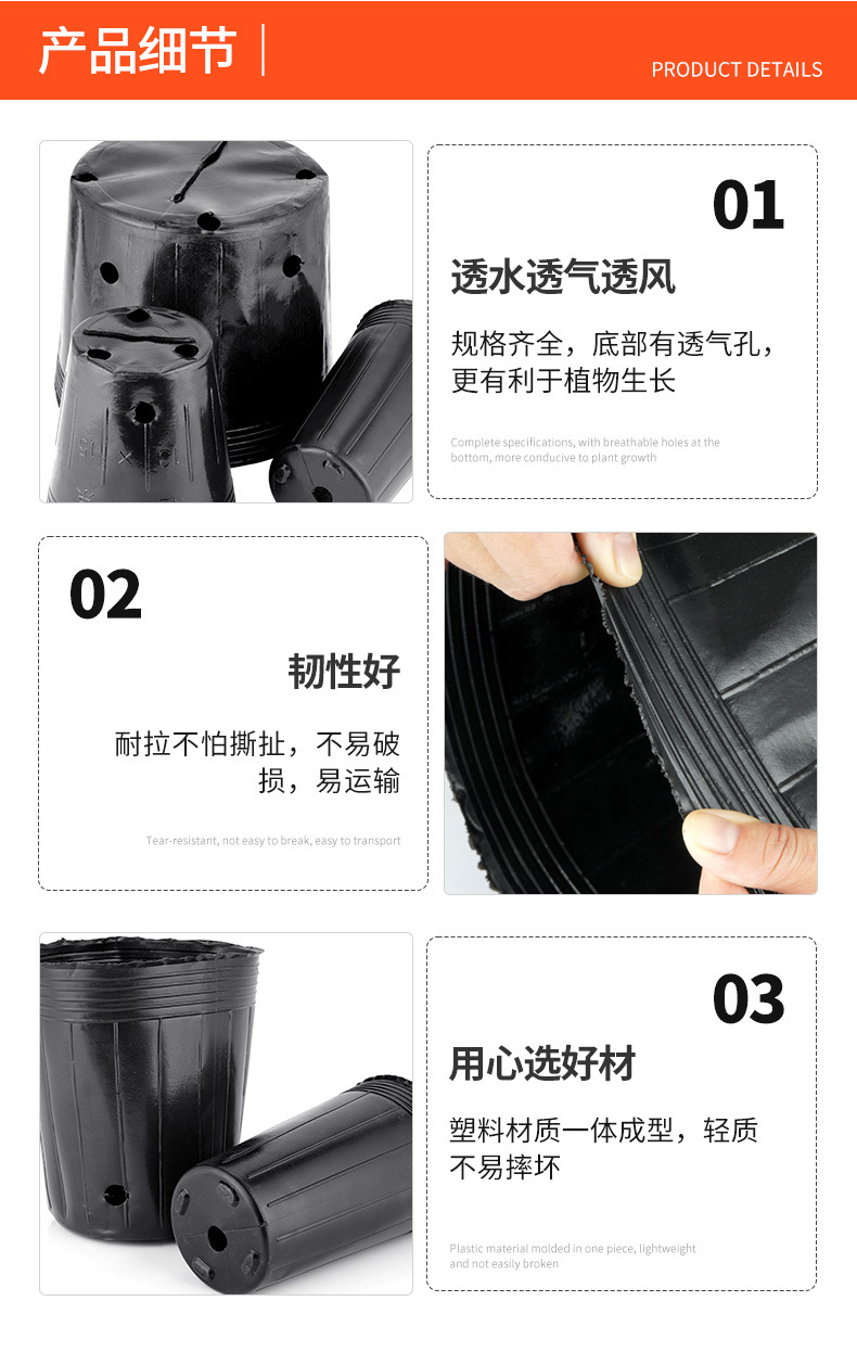 黑色营养钵透明塑料种植袋蝴蝶兰育苗杯钵一次性营养杯加厚营养袋