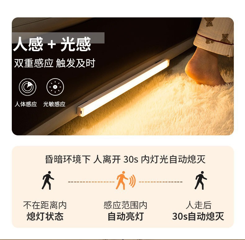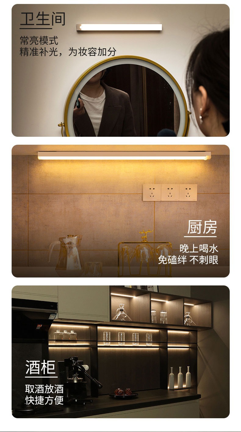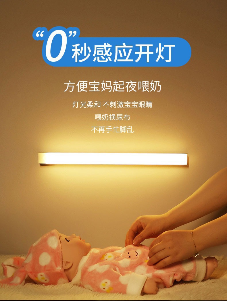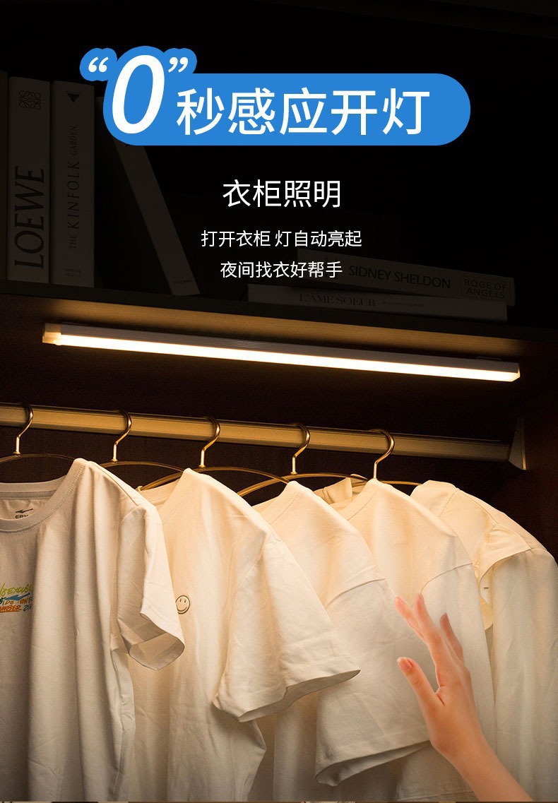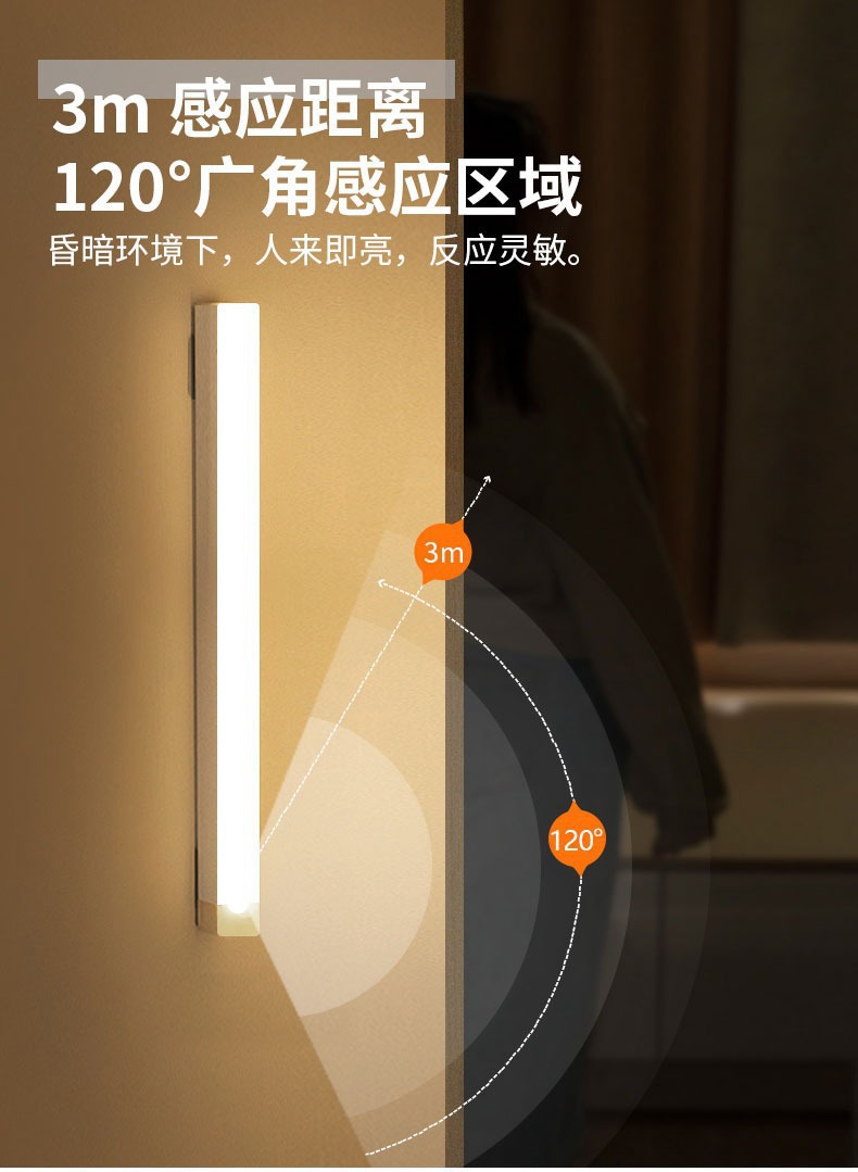 人体感应小夜灯智能自动无线长条充电磁吸灯衣柜酒柜橱柜走廊卧室