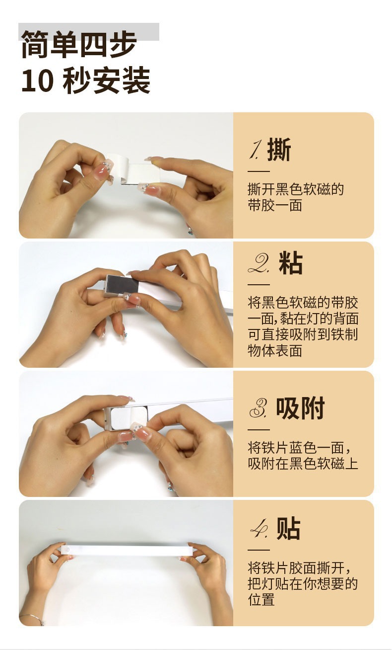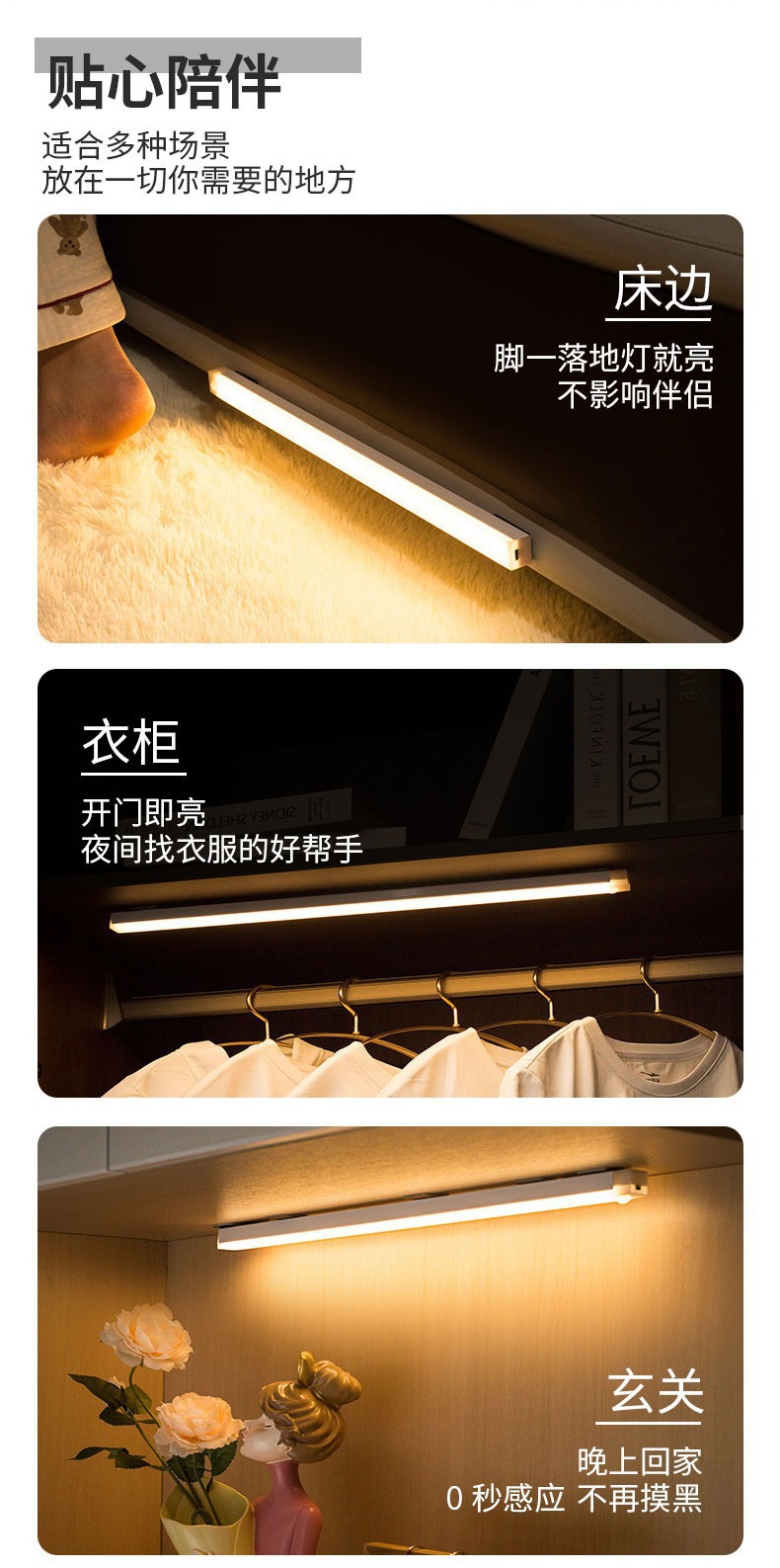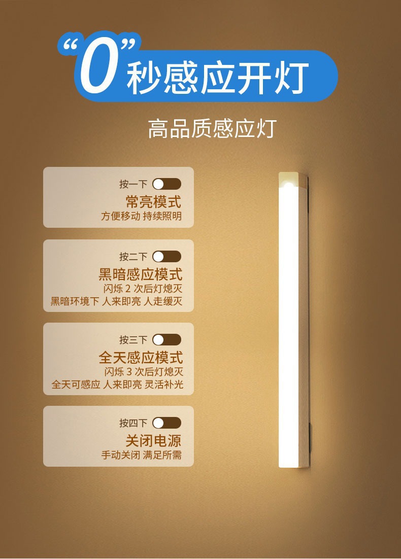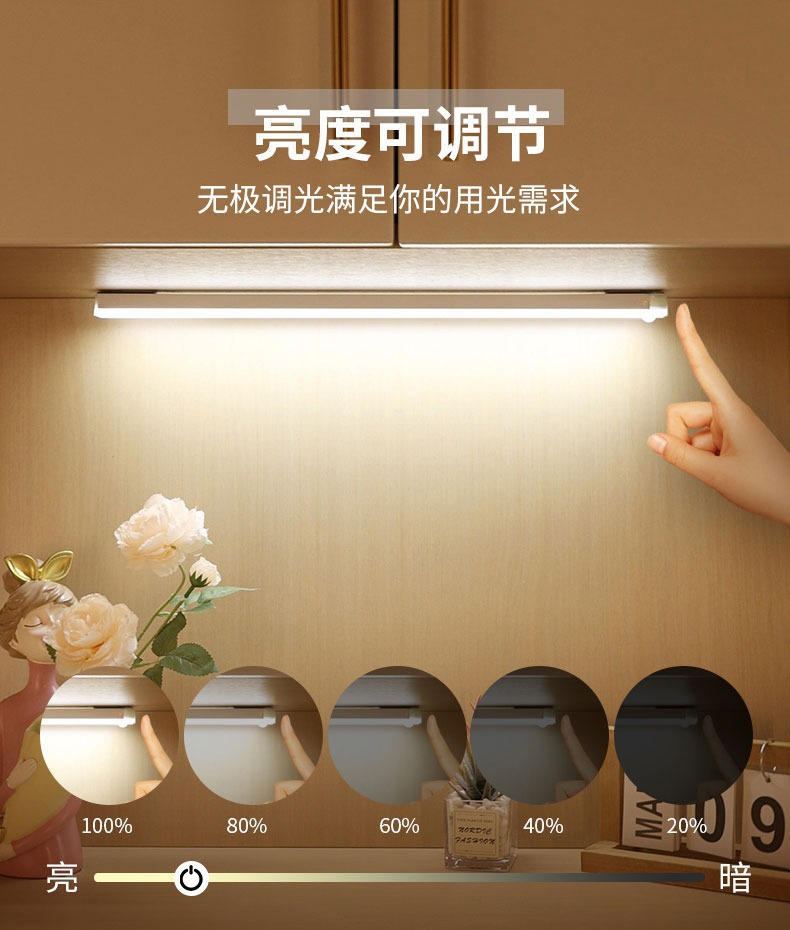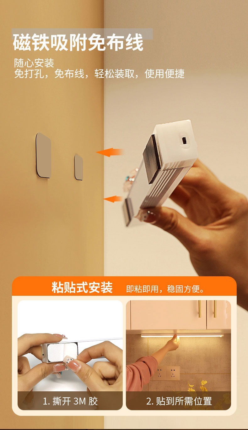 人体感应小夜灯智能自动无线长条充电磁吸灯衣柜酒柜橱柜走廊卧室