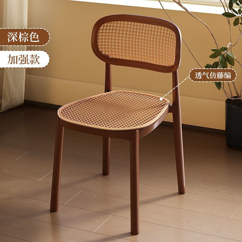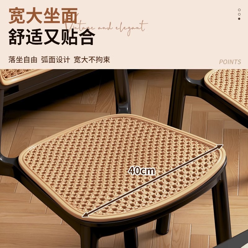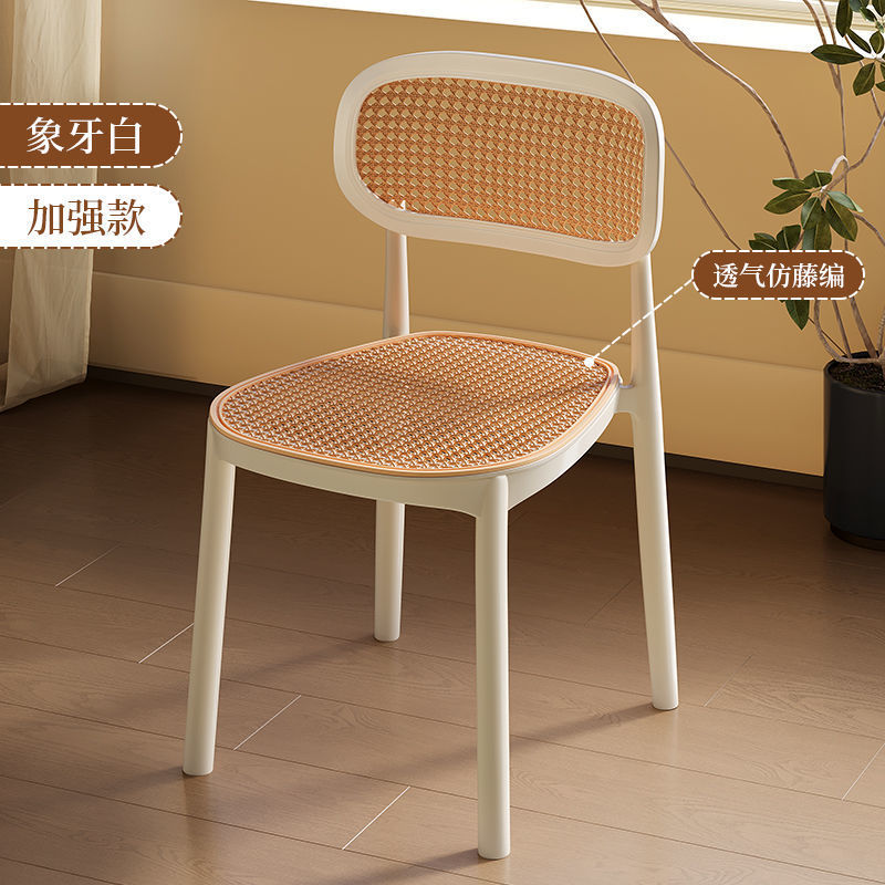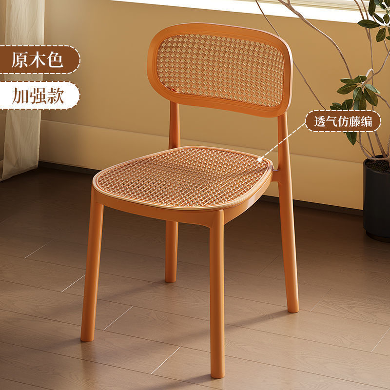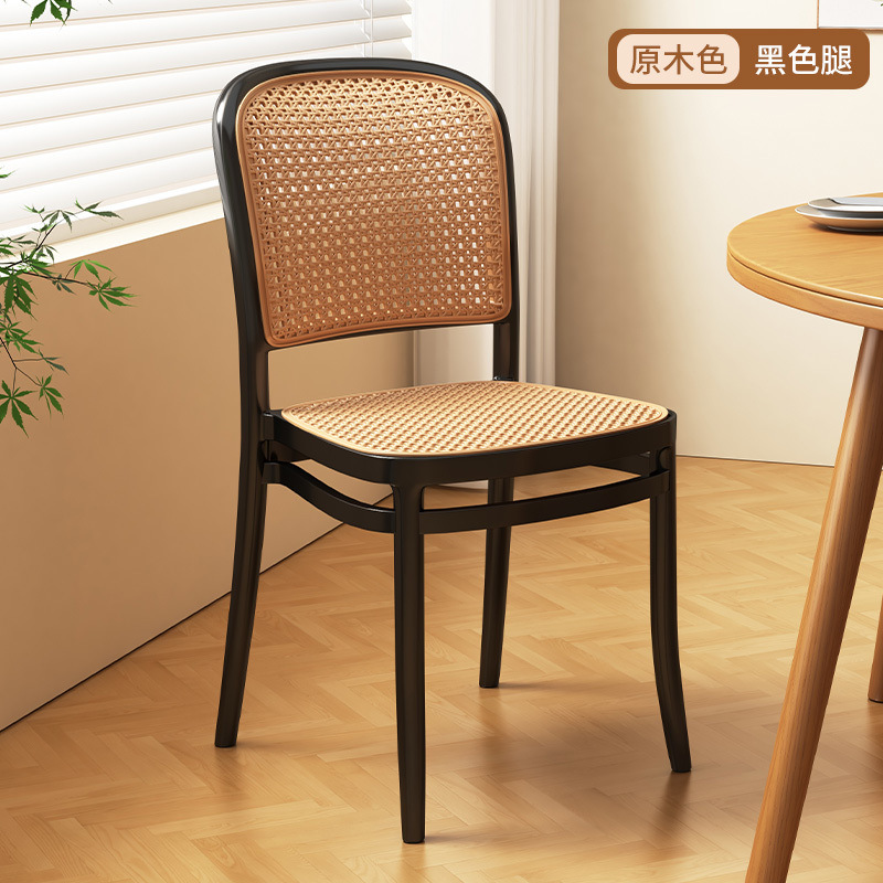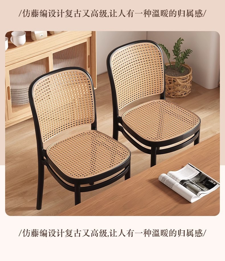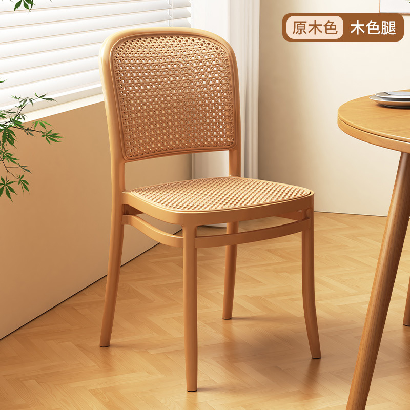 北欧餐椅藤编塑料椅子网红休闲中古靠背椅户外家用叠放小户型桌椅
