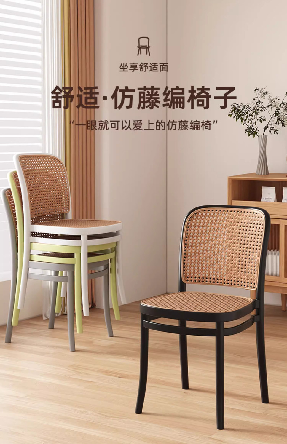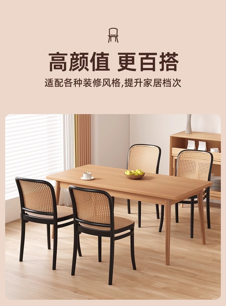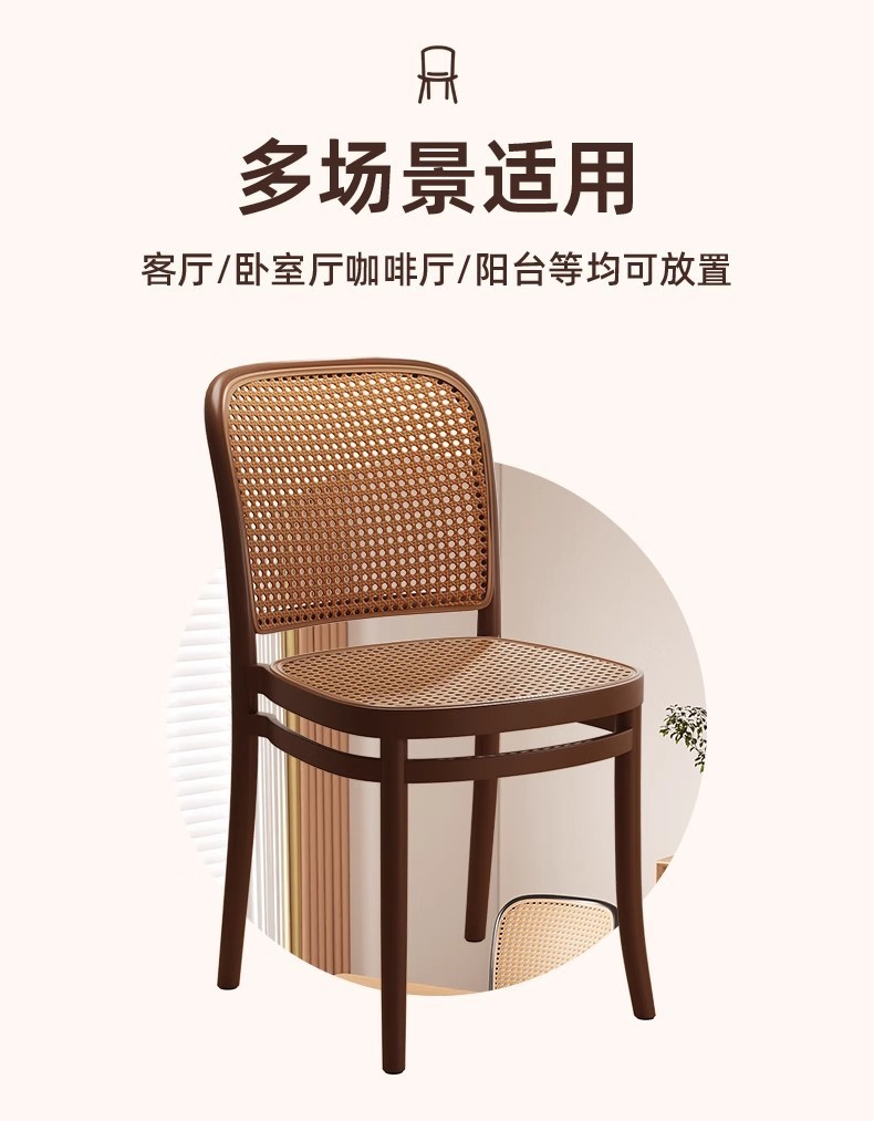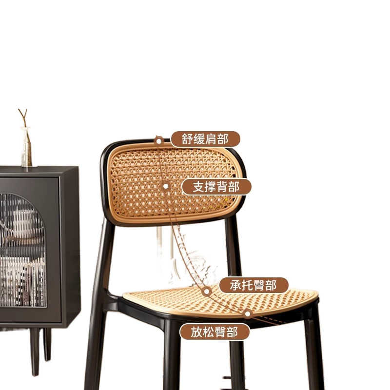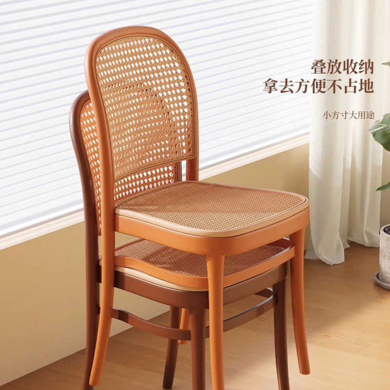 北欧餐椅藤编塑料椅子网红休闲中古靠背椅户外家用叠放小户型桌椅