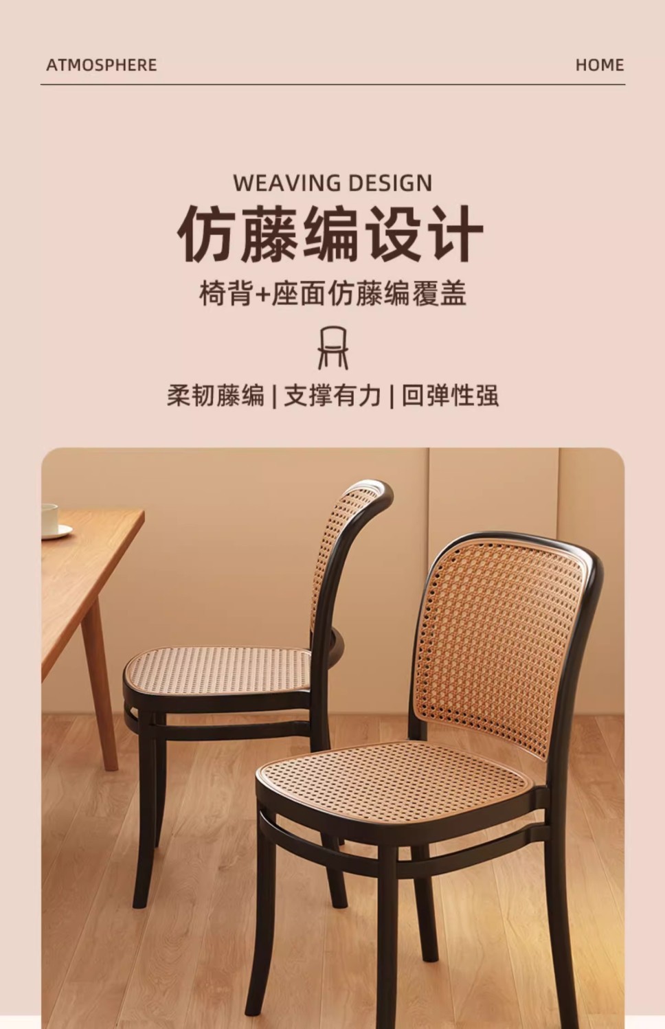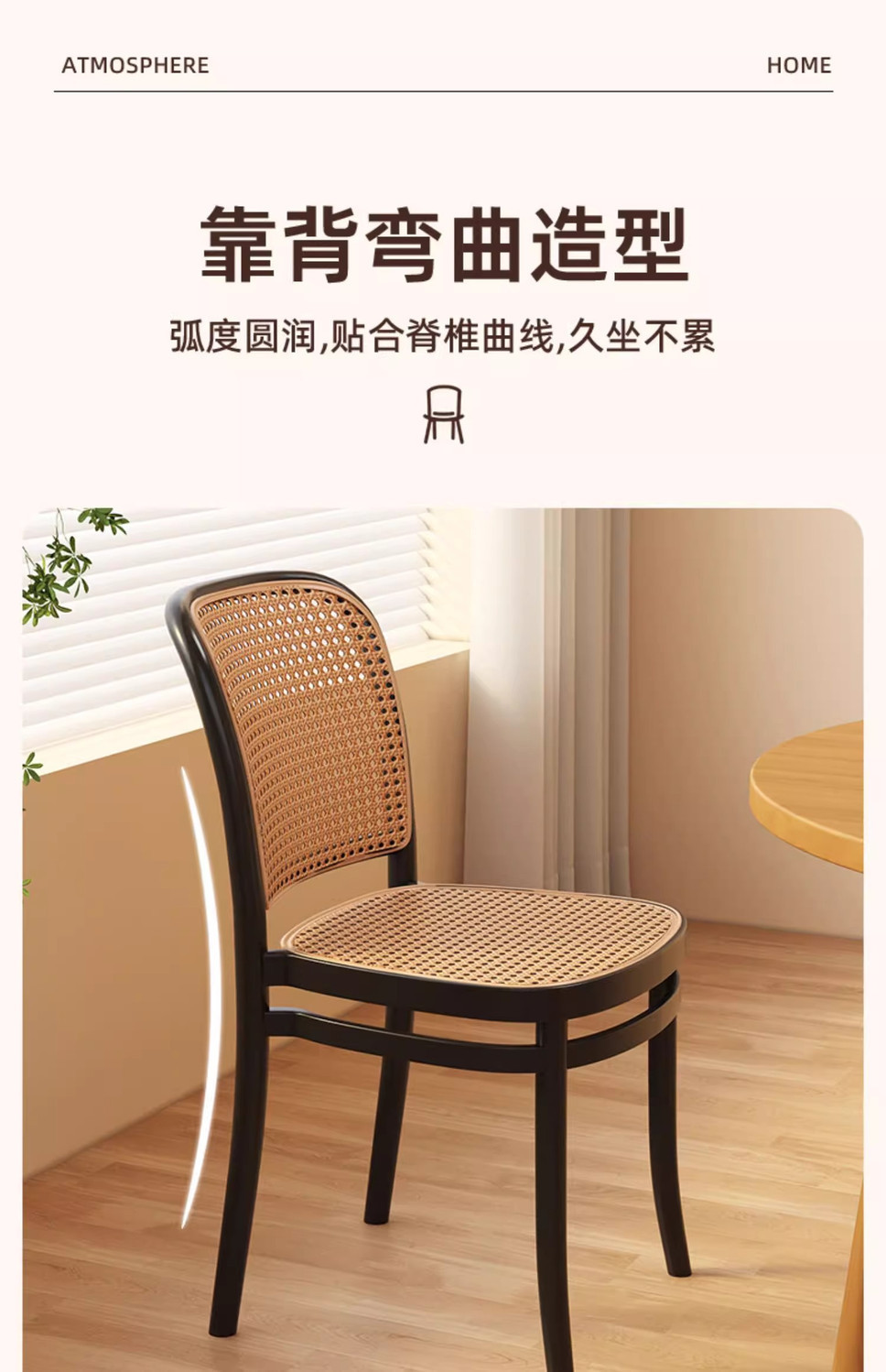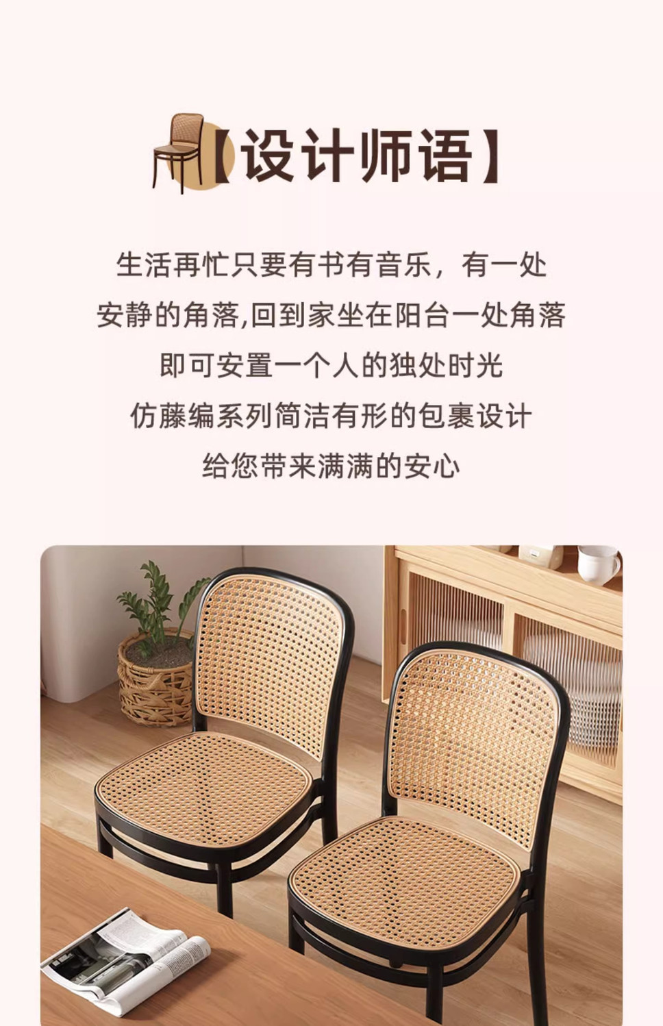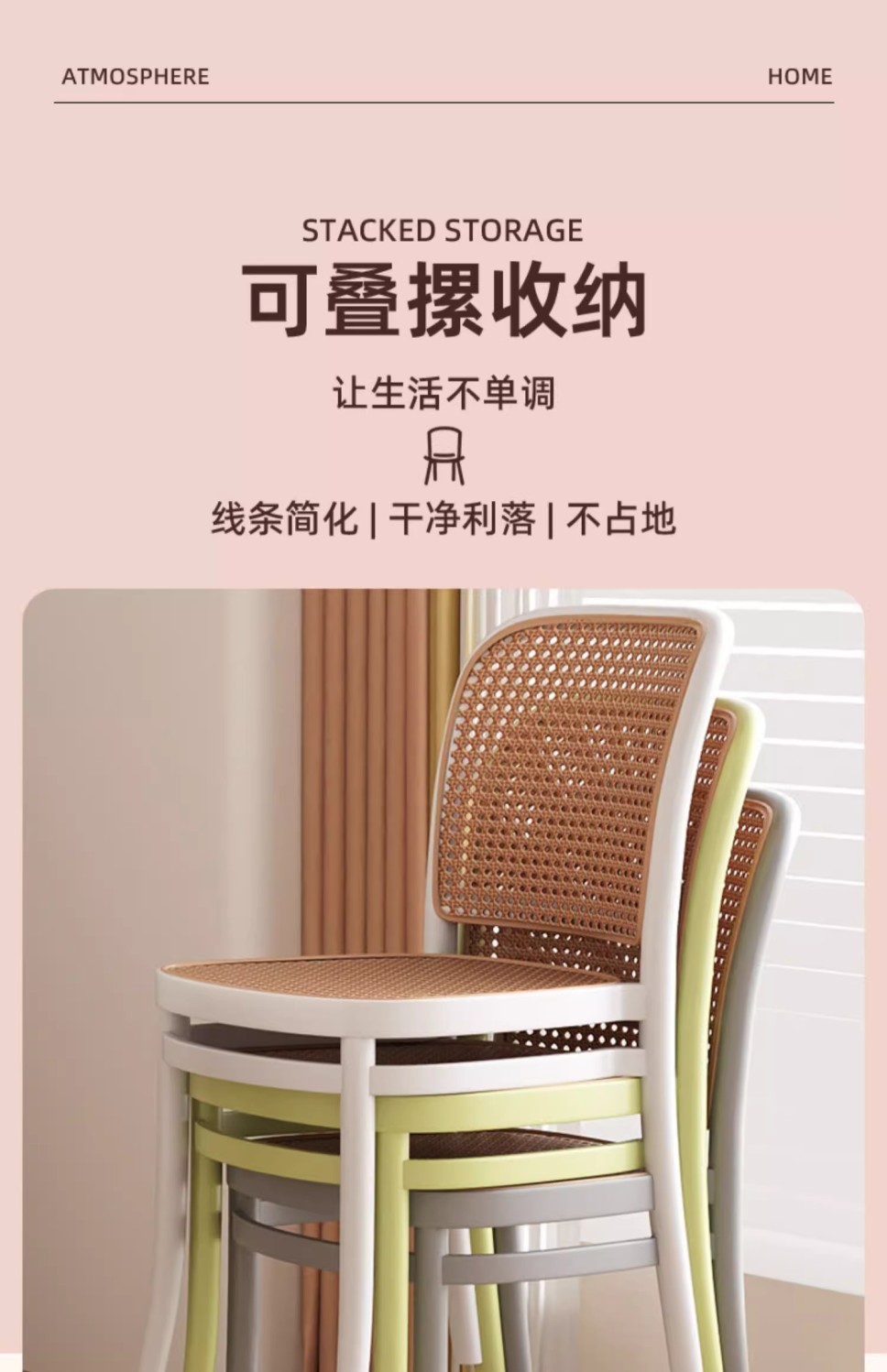 北欧餐椅藤编塑料椅子网红休闲中古靠背椅户外家用叠放小户型桌椅