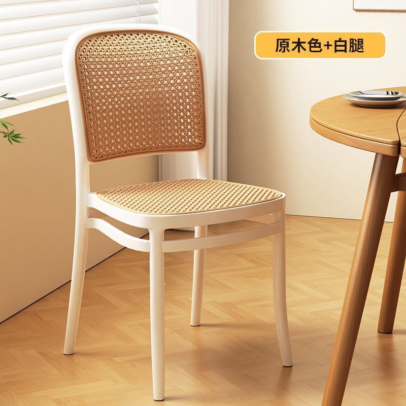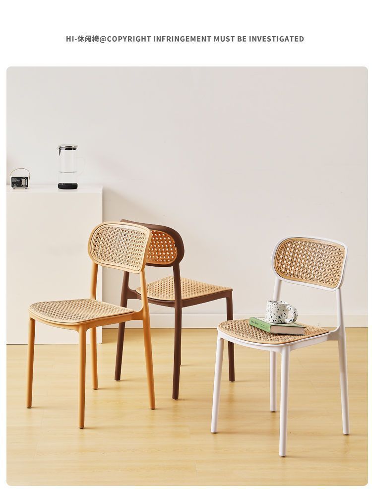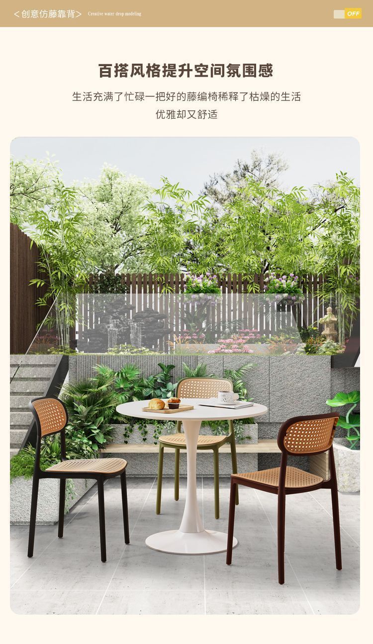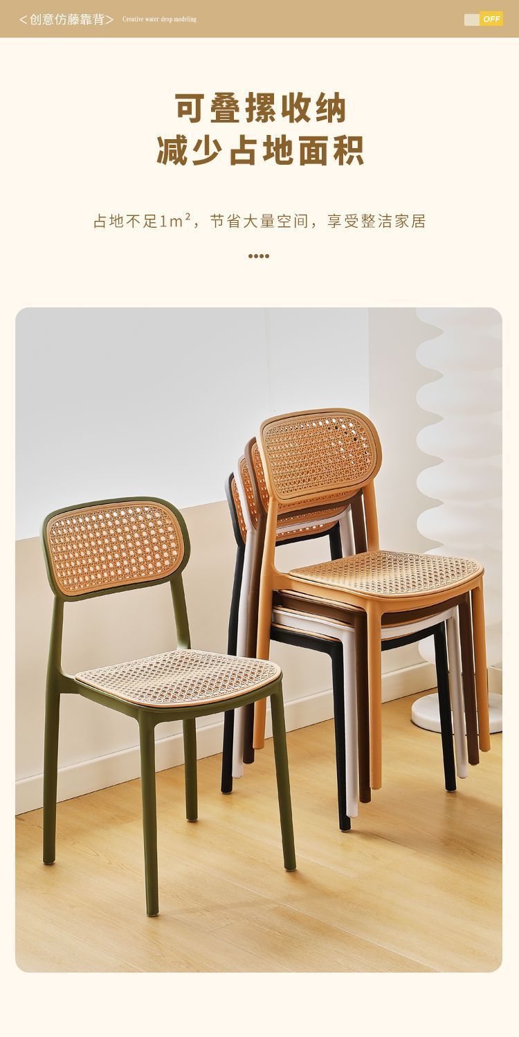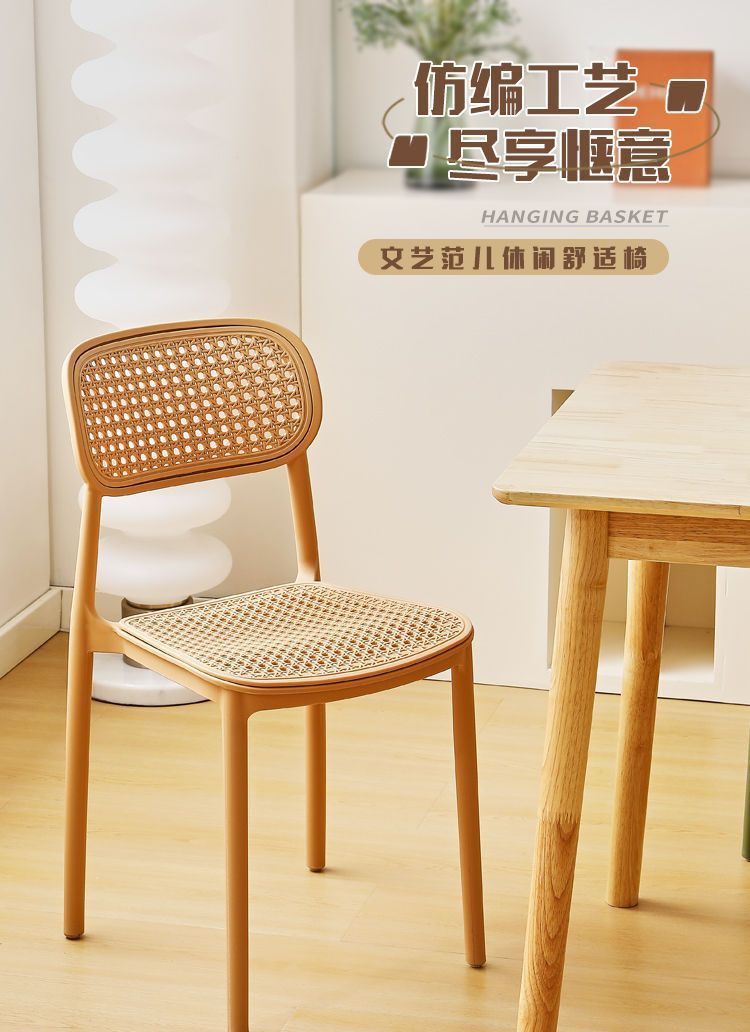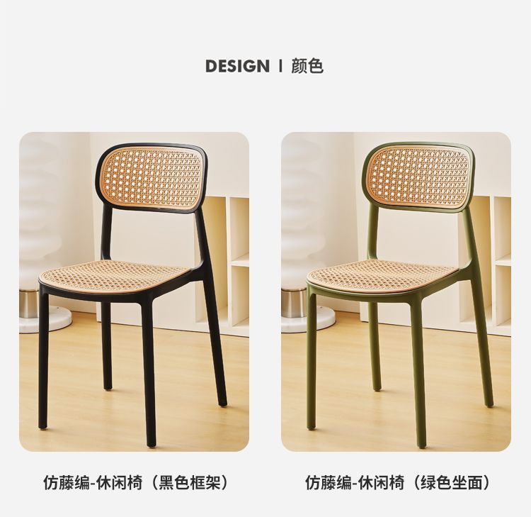 藤编塑料椅子北欧家用叠放餐椅户外网红休闲靠背椅中古小户型桌椅