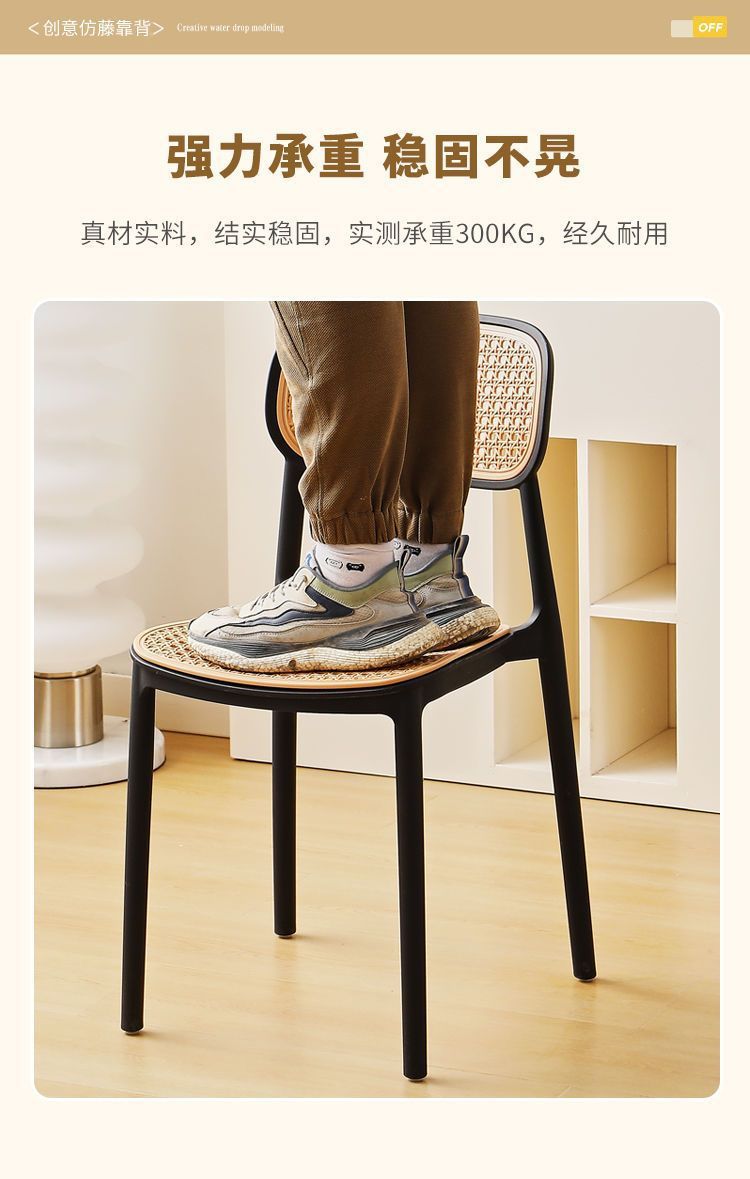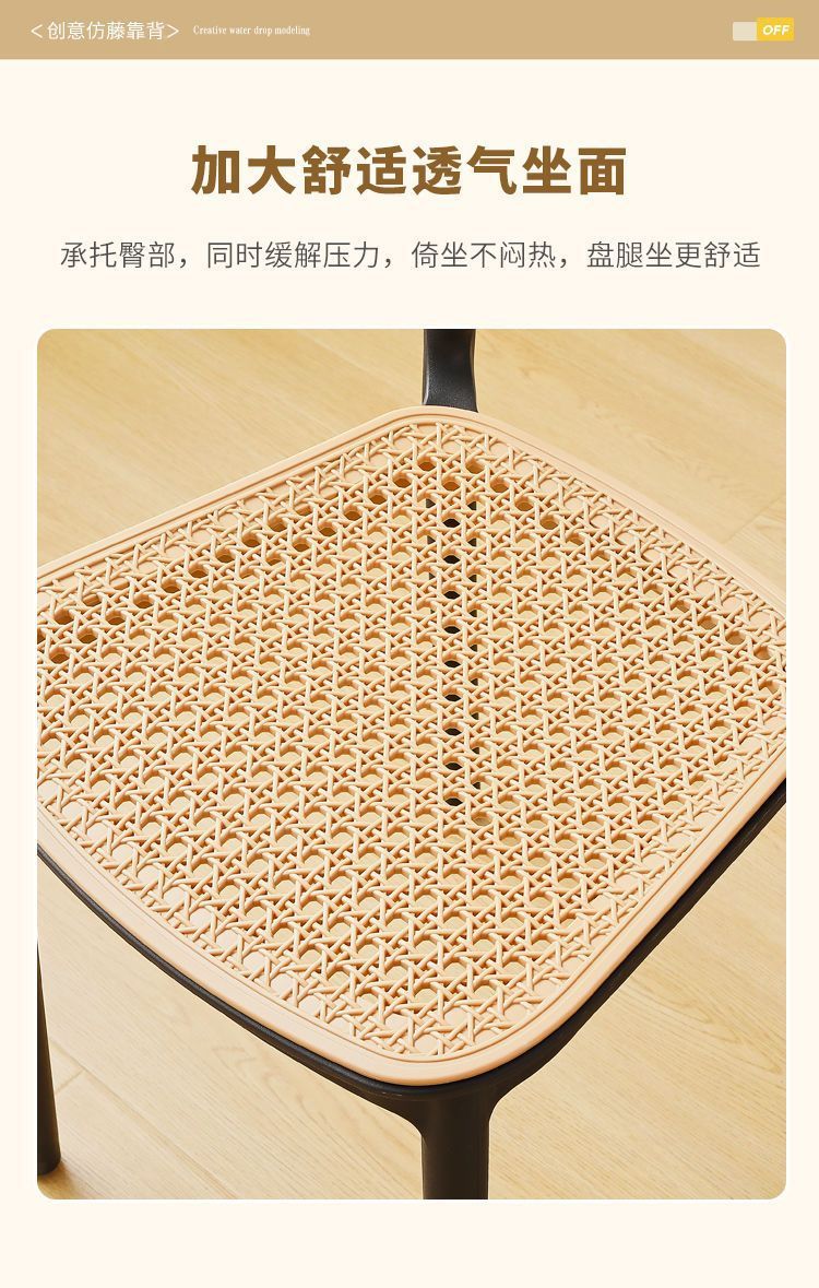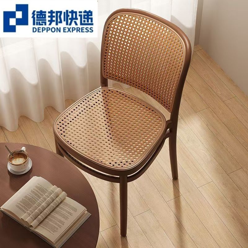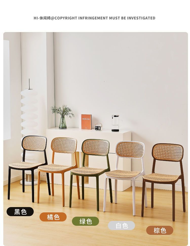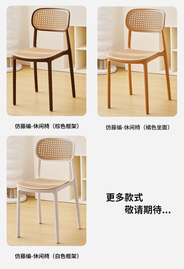 藤编塑料椅子北欧家用叠放餐椅户外网红休闲靠背椅中古小户型桌椅