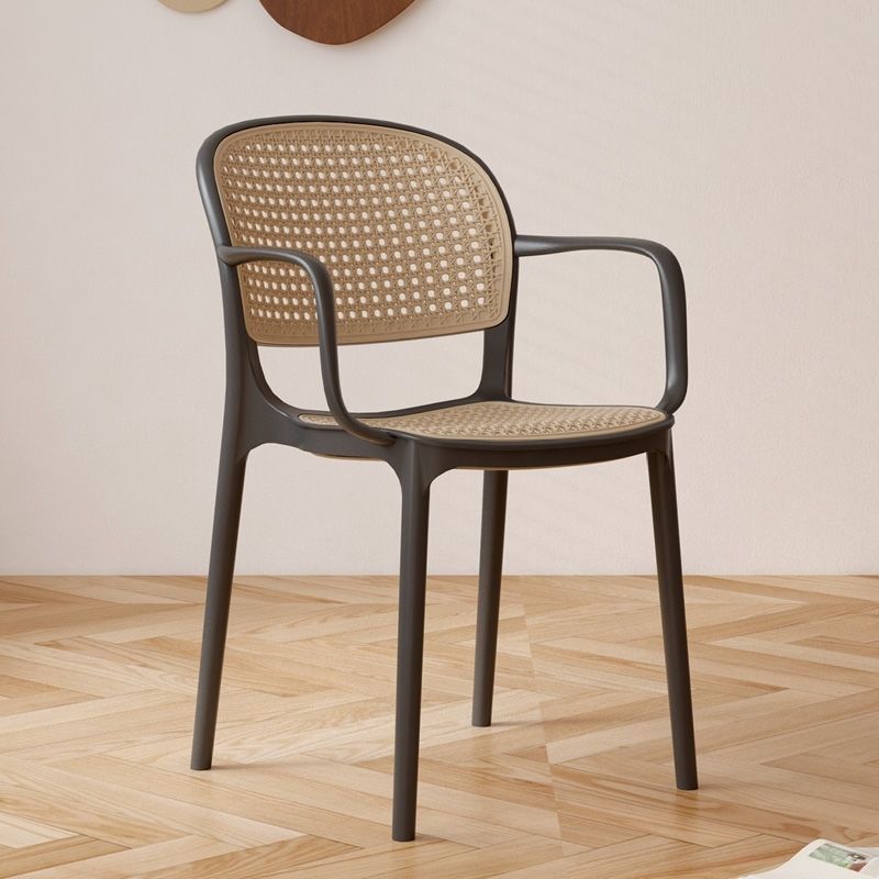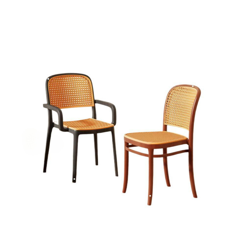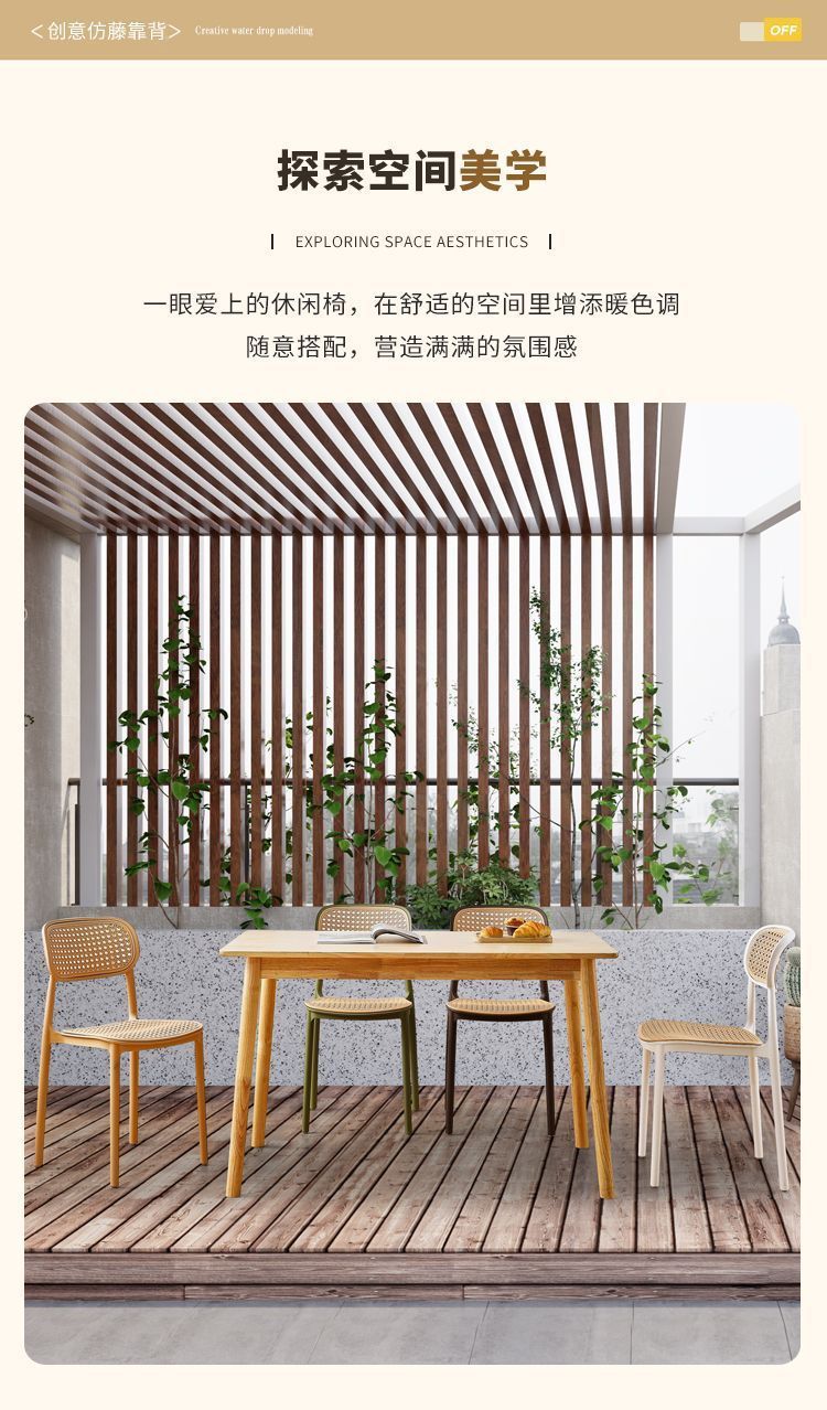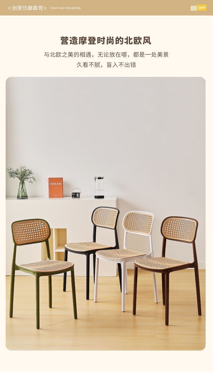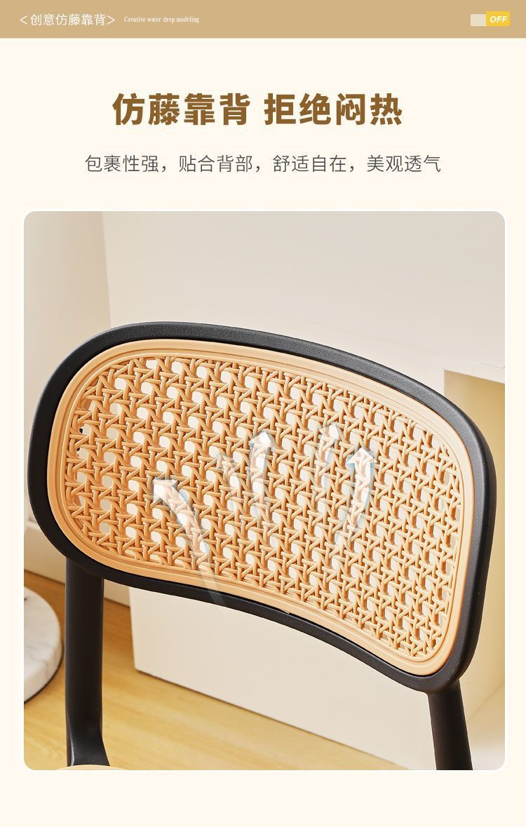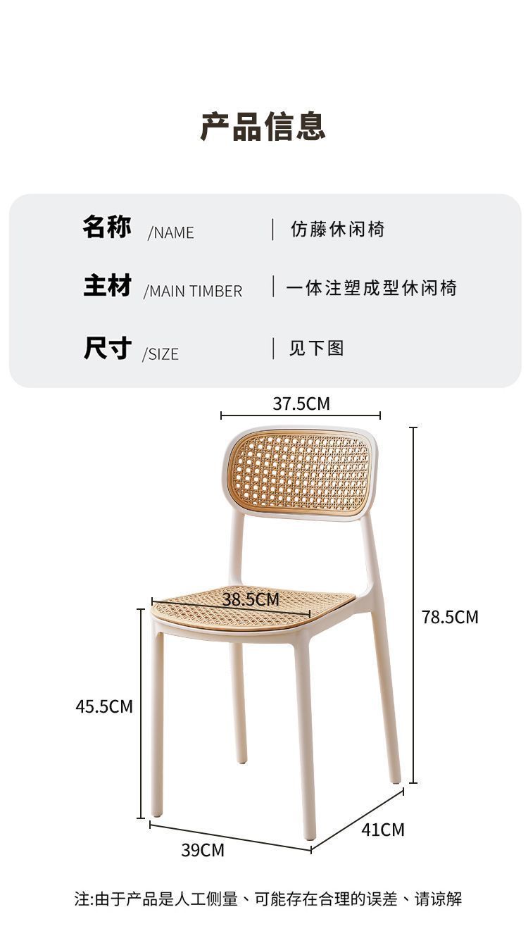 藤编塑料椅子北欧家用叠放餐椅户外网红休闲靠背椅中古小户型桌椅