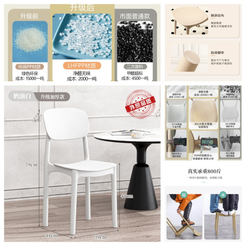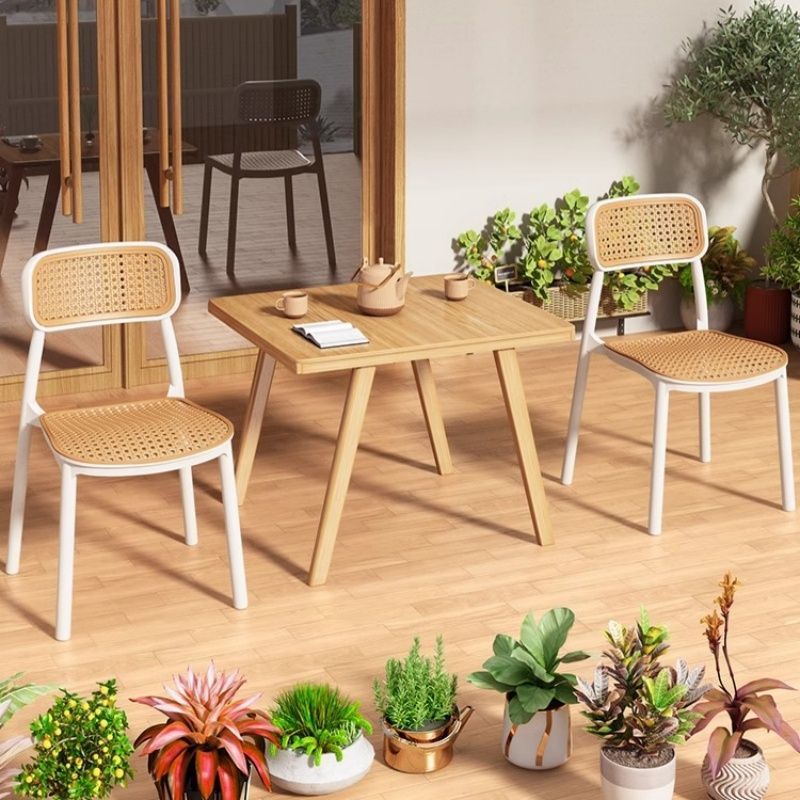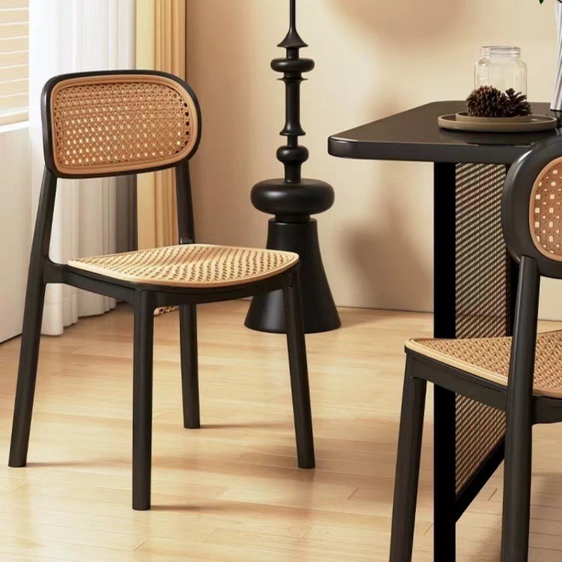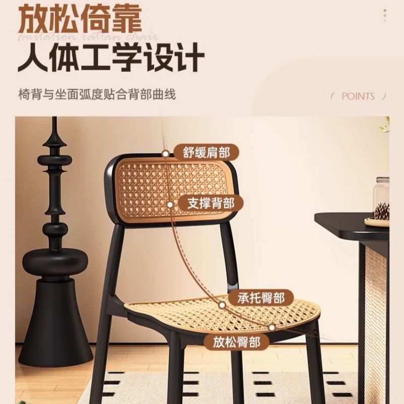 椅子藤编北欧中古餐椅家用塑料叠放户外网红靠背椅小户型休闲桌椅