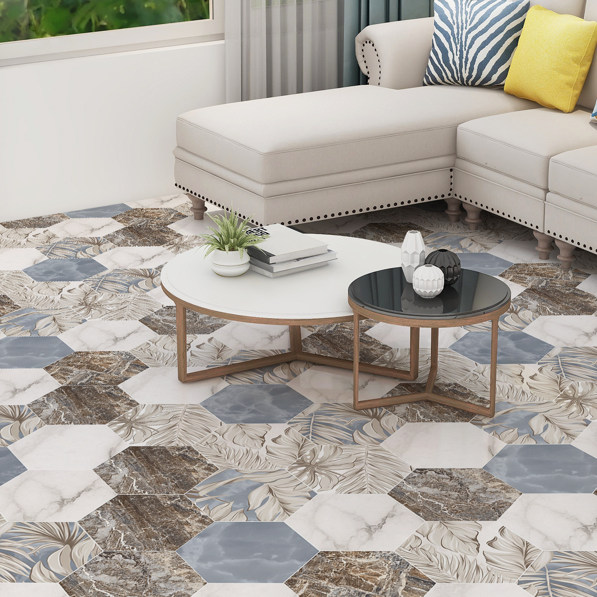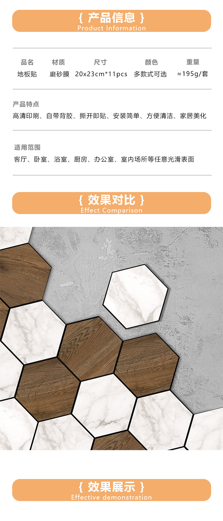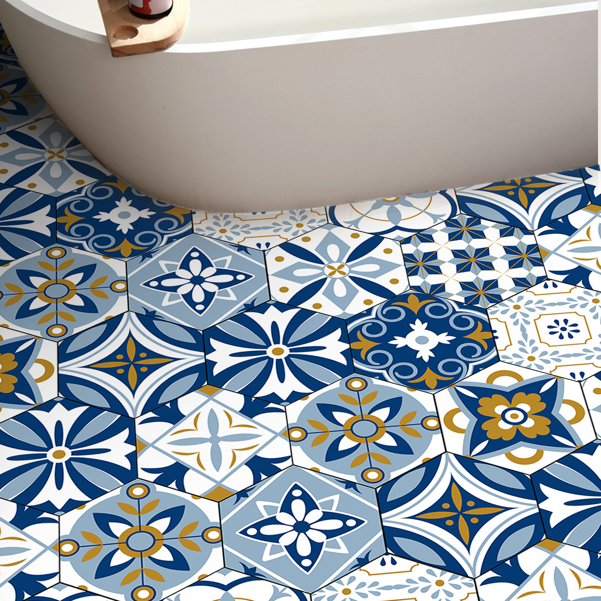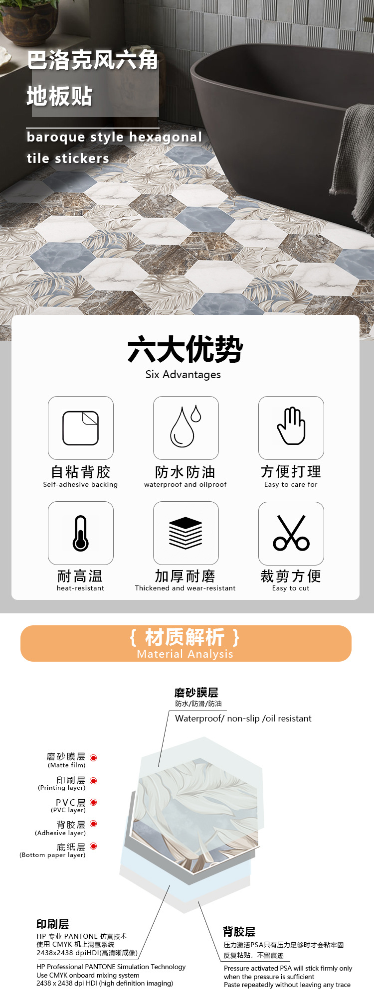 北欧自粘地贴 巴洛克风格防水六边形墙贴 卫生间防滑耐磨地砖贴纸