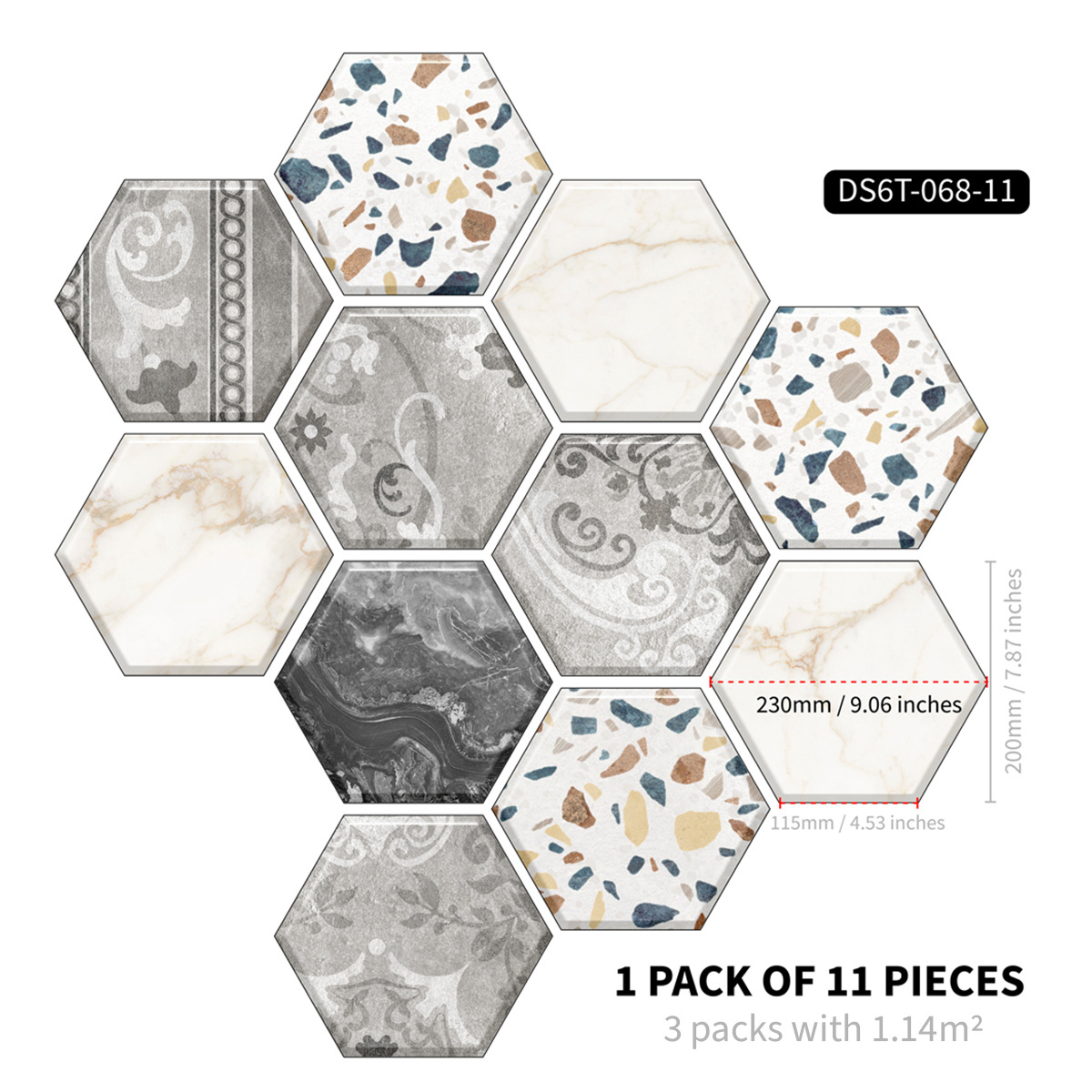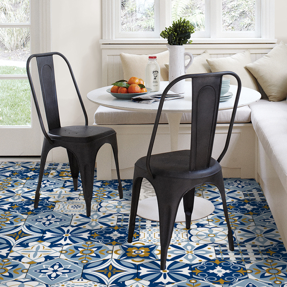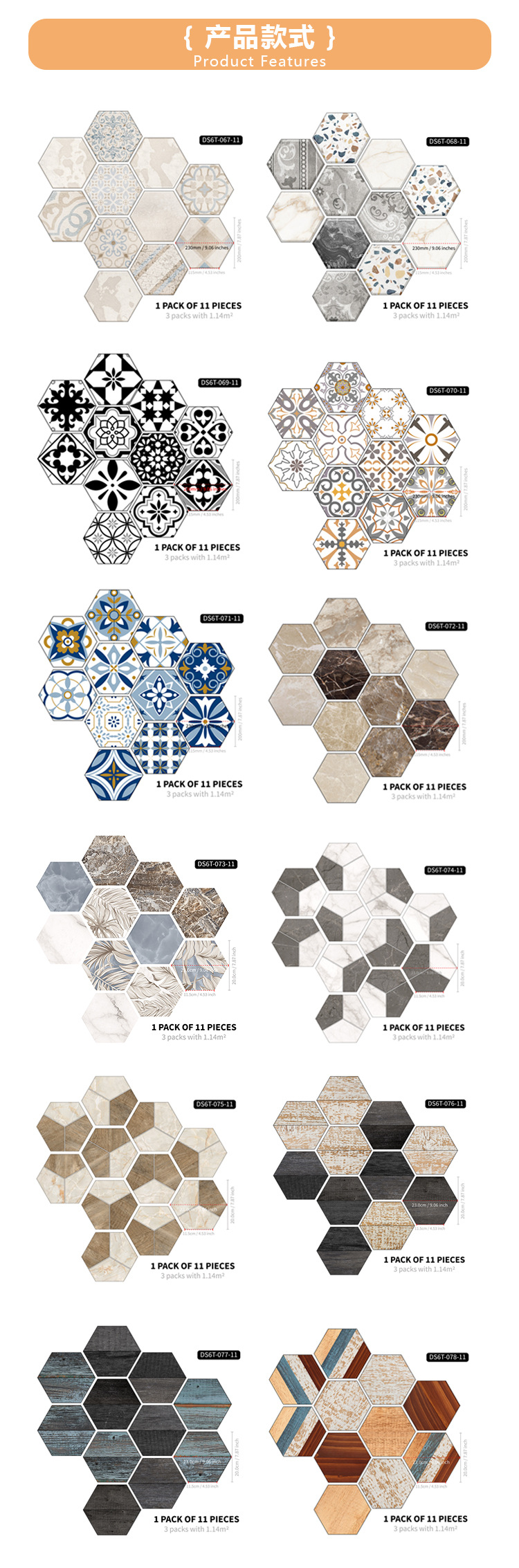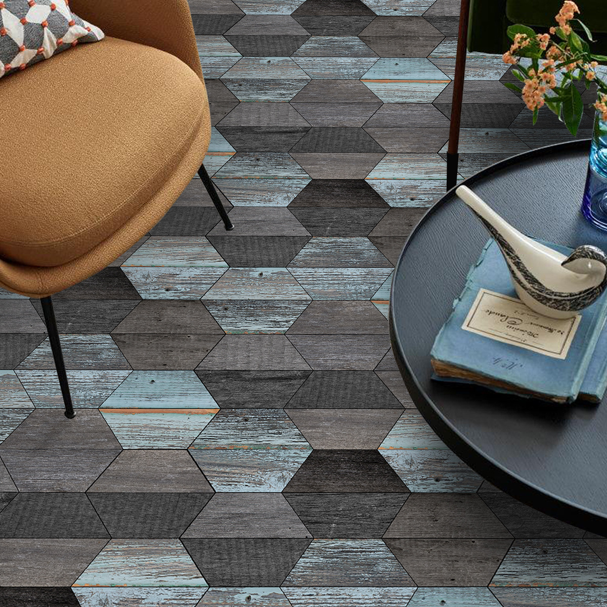 北欧自粘地贴 巴洛克风格防水六边形墙贴 卫生间防滑耐磨地砖贴纸