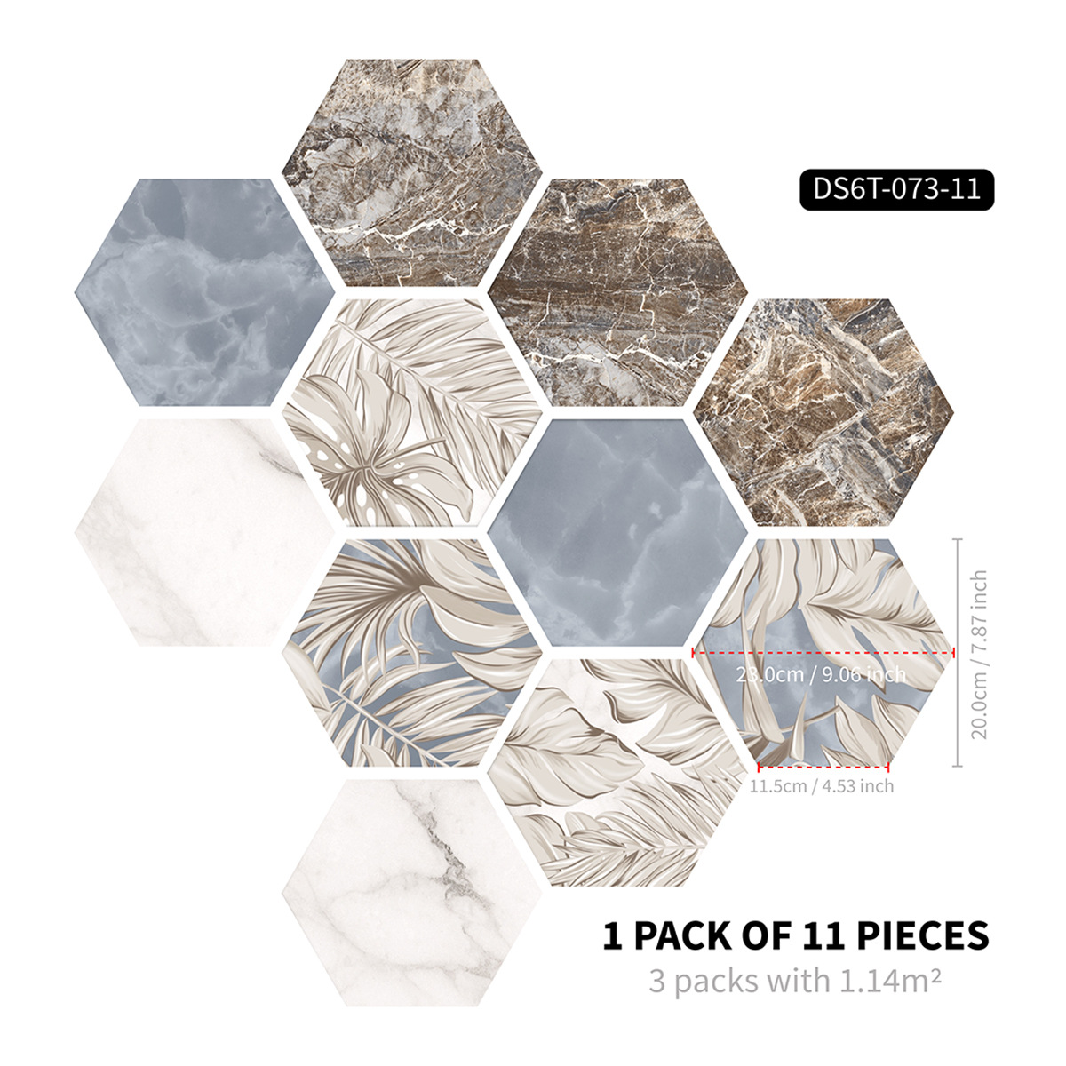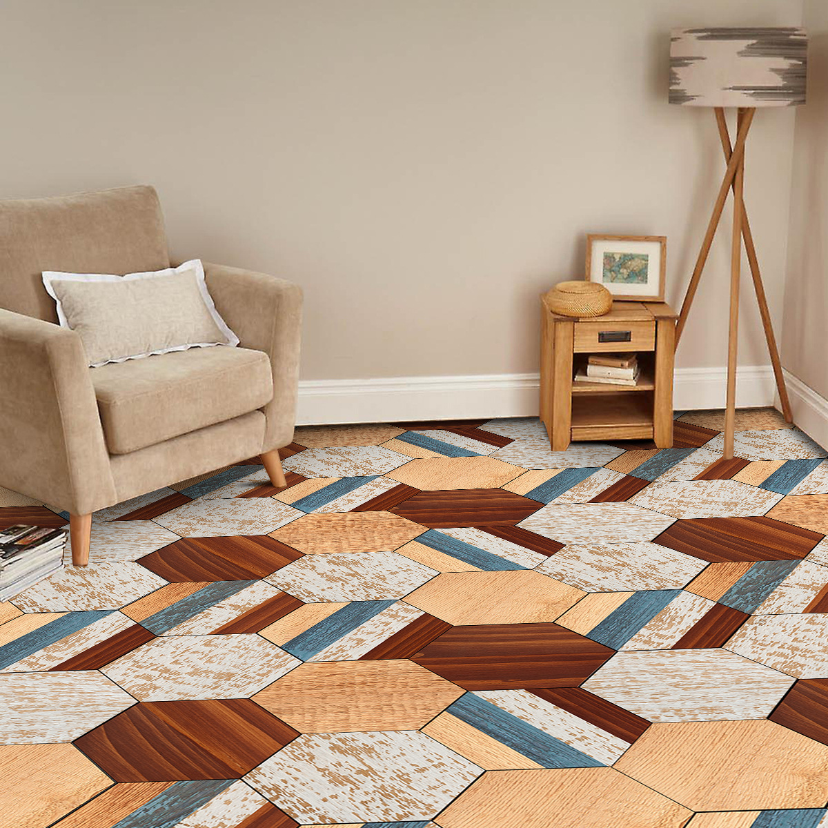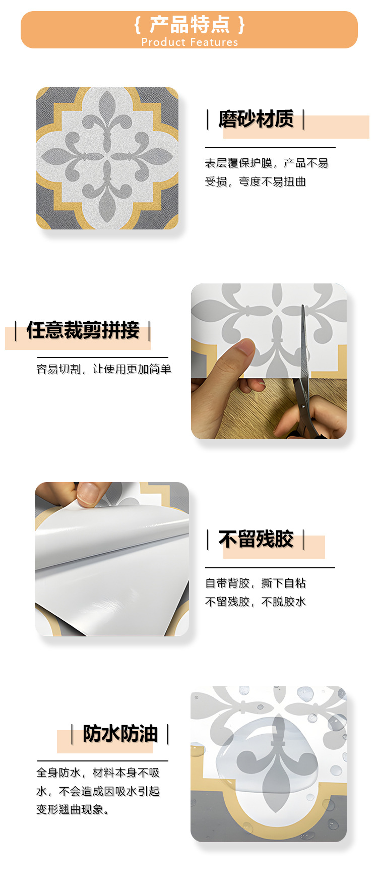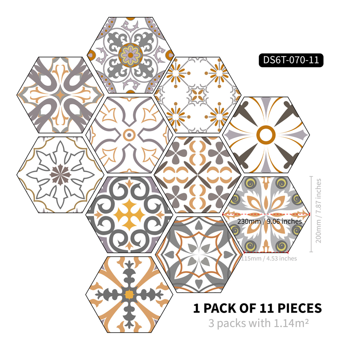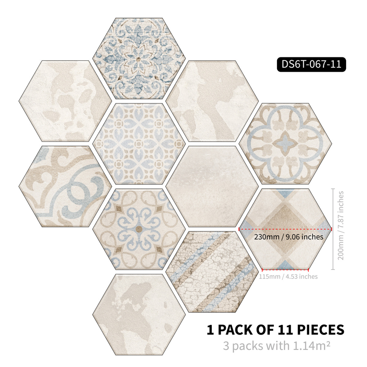 北欧自粘地贴 巴洛克风格防水六边形墙贴 卫生间防滑耐磨地砖贴纸