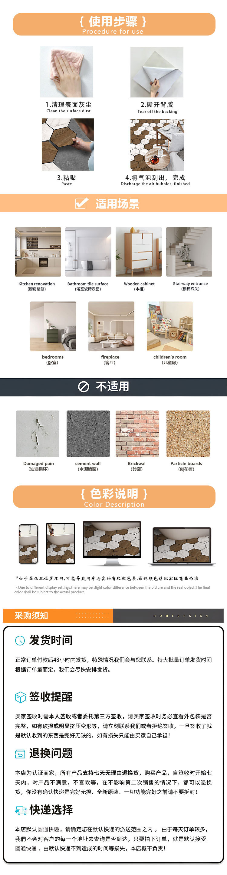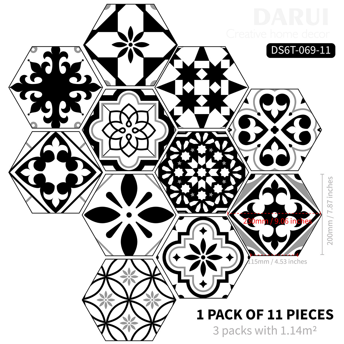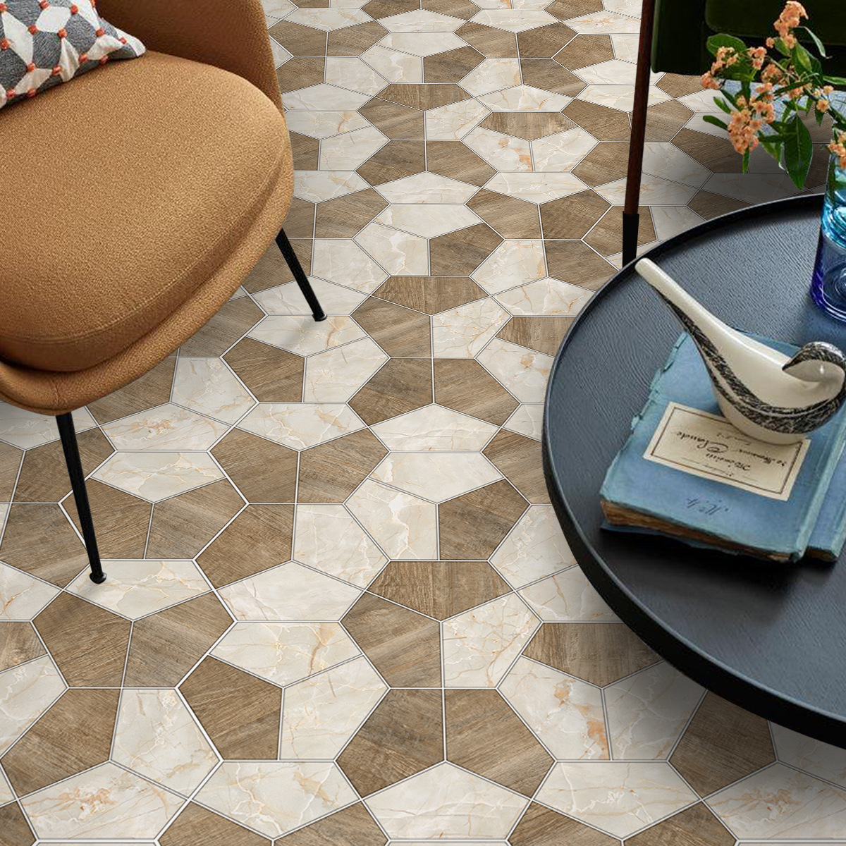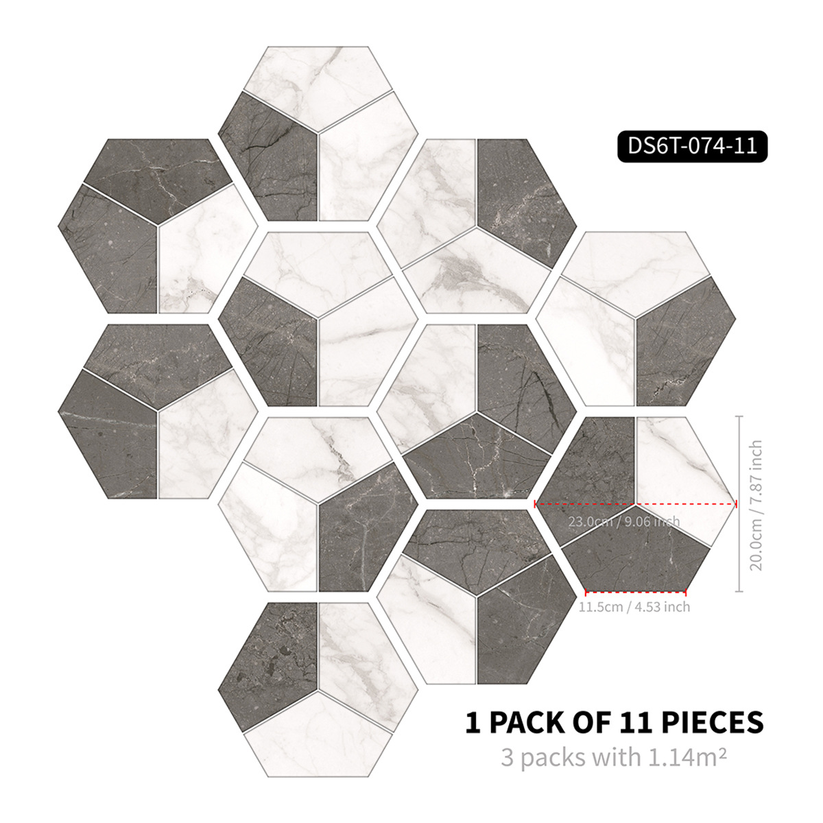 北欧自粘地贴 巴洛克风格防水六边形墙贴 卫生间防滑耐磨地砖贴纸