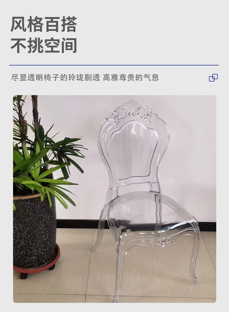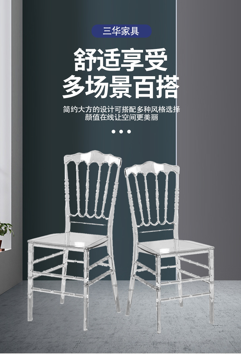批发酒店宴会椅竹节水晶椅透明塑料罗马柱太阳椅皇冠椅亚克力餐椅