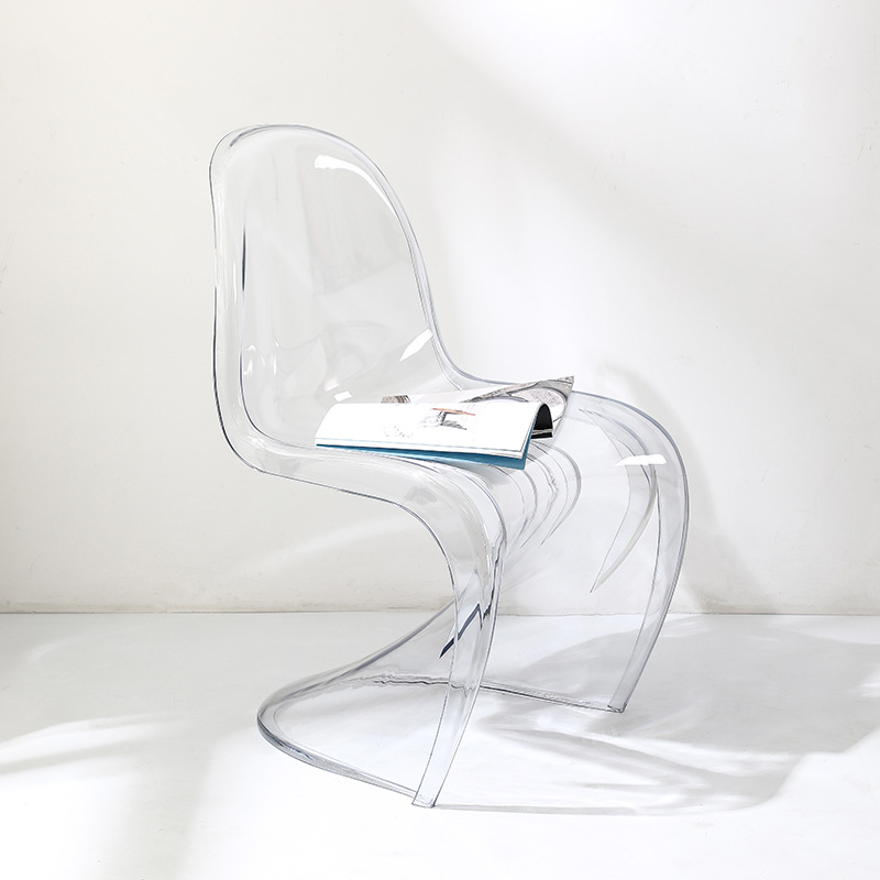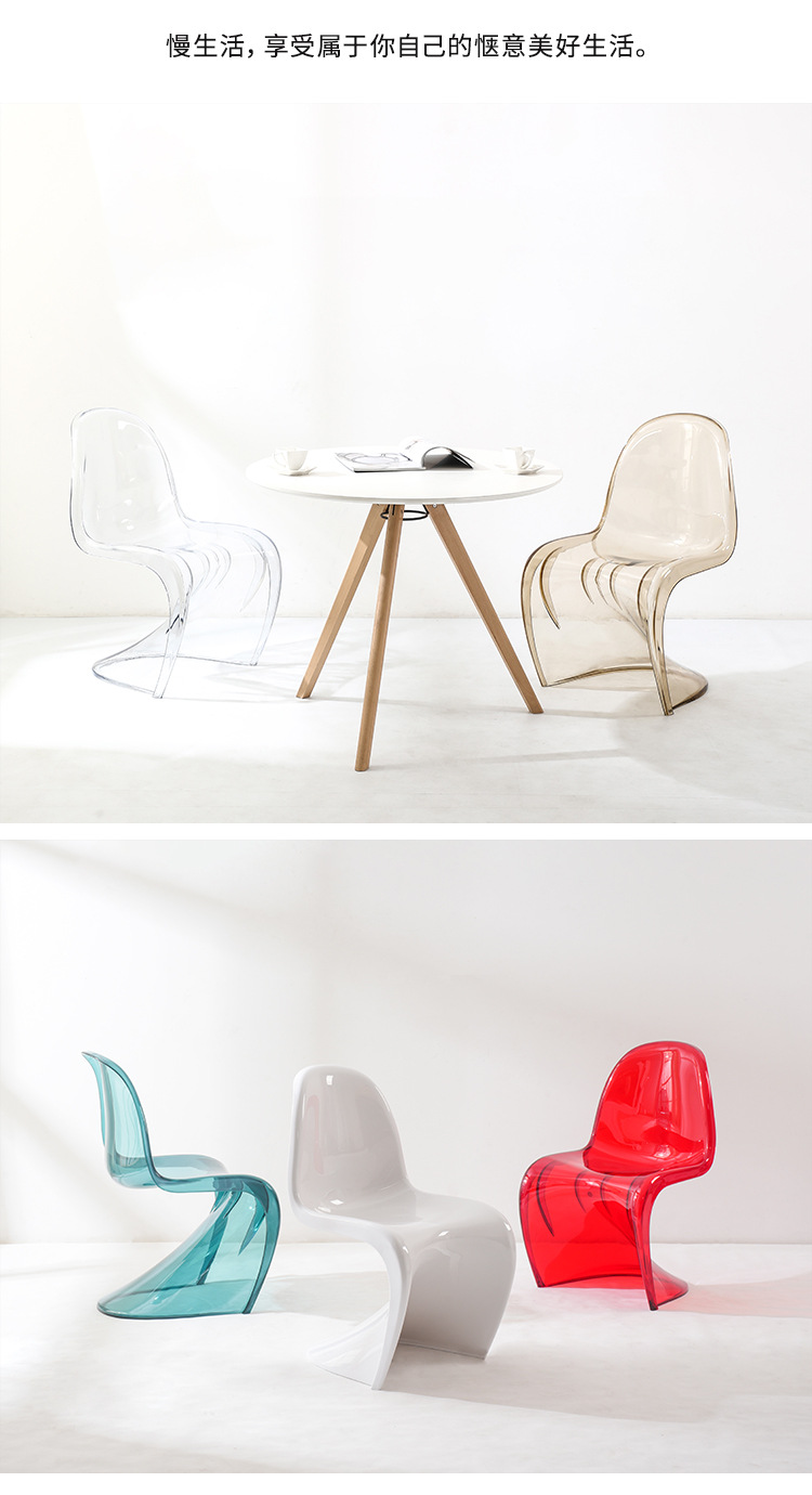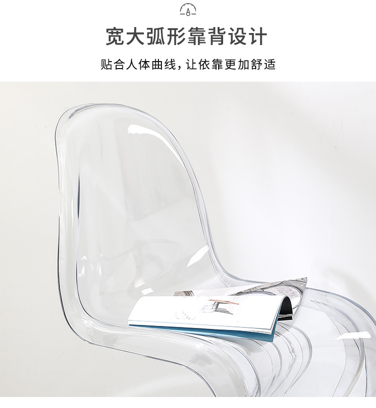 网红潘东椅白色餐椅透明塑料亚克力椅子靠背休闲洽谈椅创意化妆凳
