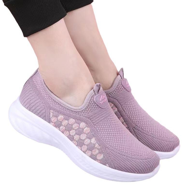 2024女士休闲单鞋时尚休闲大码外贸刺绣女网鞋一脚蹬懒人妈妈鞋