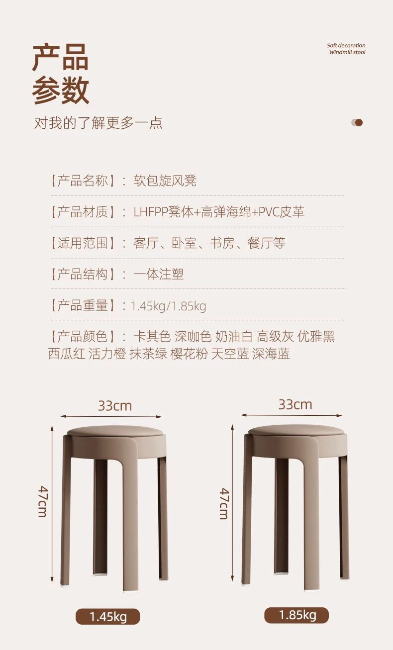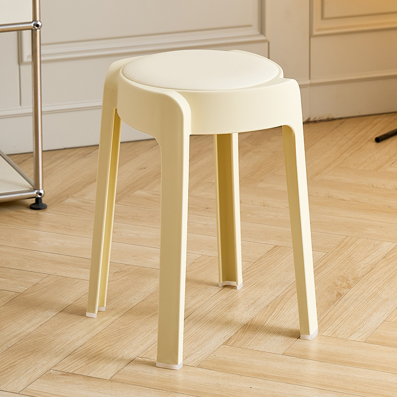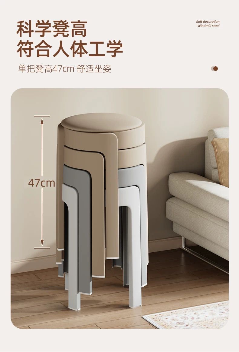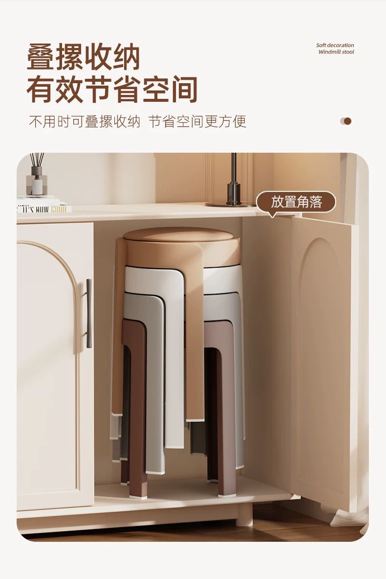 塑料软包凳子家用可叠放圆凳轻奢高级感等位备用高凳客厅餐厅凳子