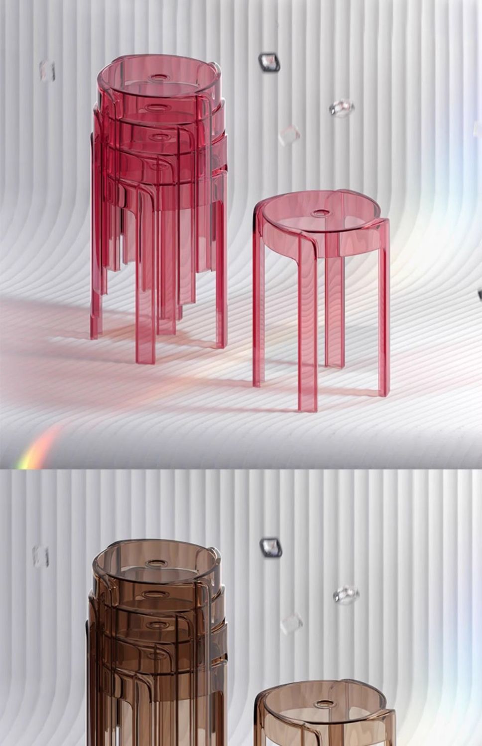 透明亚克力塑料凳子特厚收纳凳现代简约可叠放家用加厚网红椅子