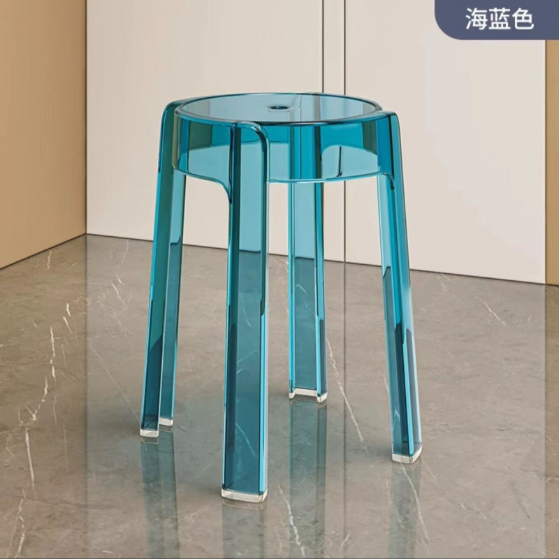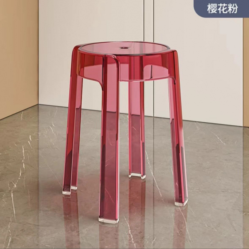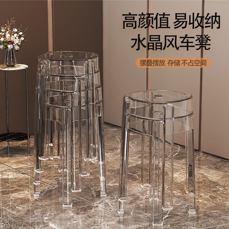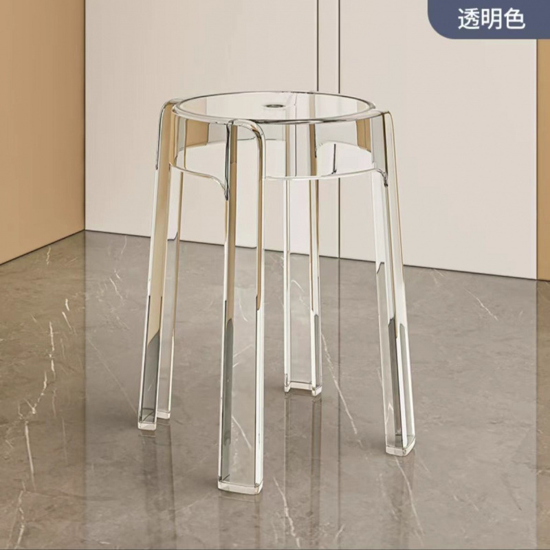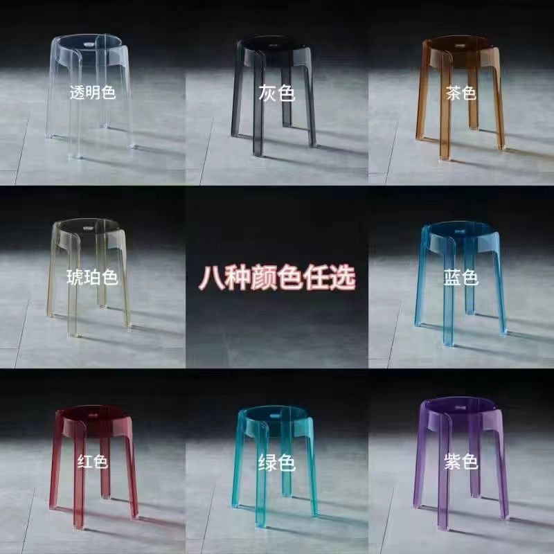 新款亚克力圆凳子网红椅子塑料家用加厚简约现代办公叠放餐椅凳子