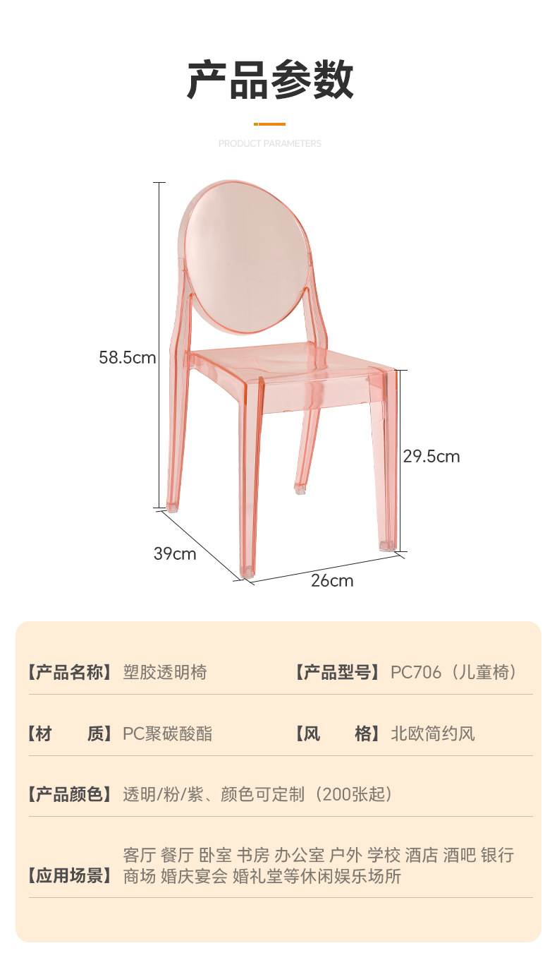 diningchairs跨境外贸亚克力椅子主题餐厅幽灵椅儿童版透明水晶椅